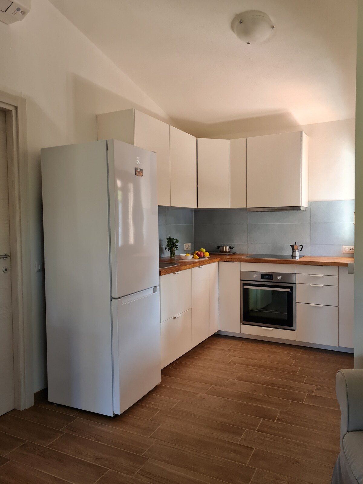 Villan er 150mt. frá sjó og í 2ja mín. akstursfjarlægð frá miðborginni .Íbúðin er með 3 svefnherbergjum, 2 baðherbergjum, eldhúsi, stofu, garði, efri verönd með þvottahúsi, sólstofu, sturtu. Þægindi:uppþvottavél, þvottavél, hárþurrka, sjónvarp, loftræsting, ofn, grill,RAFMAGN og aukakostnaður. Innritun/útritun14.30/10.00. Tryggingarfé. Borgarskattur er undanskilinn Litlir hundar € 100 fyrir hver þrif Stórir hundar að stærð € 200 fyrir þrif