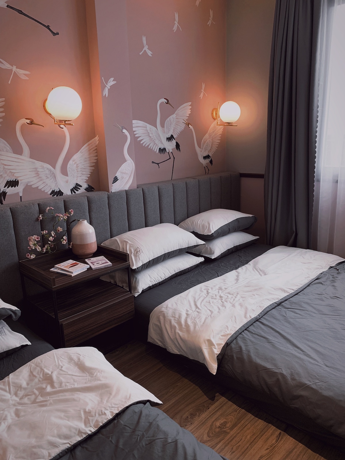 Triple room is located on the 2nd floor of the hostel, including 1 big bed and 1 single bed, with an outside balcony, you can enjoy the wonderful natural scenery in front, you can sunbathe because the room is in the east. We will assist you to book a tour, book a ticket, call a taxi or Grab, you can join us to use cozy meals to understand more about the customs of Vietnamese people. Come and experience with us.