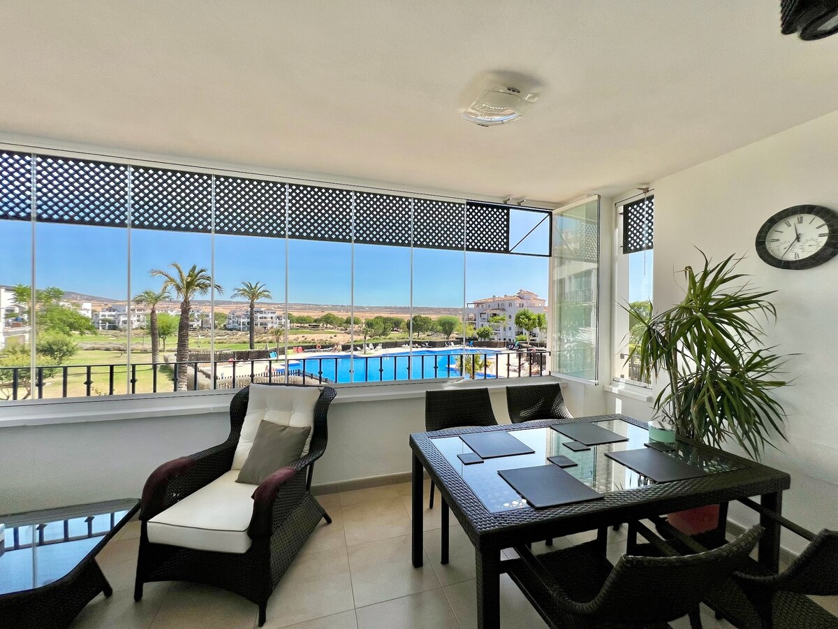 4,93 af 5 í meðaleinkunn, 15 umsagnirGlæsileg íbúð með sundlaug og golfútsýni