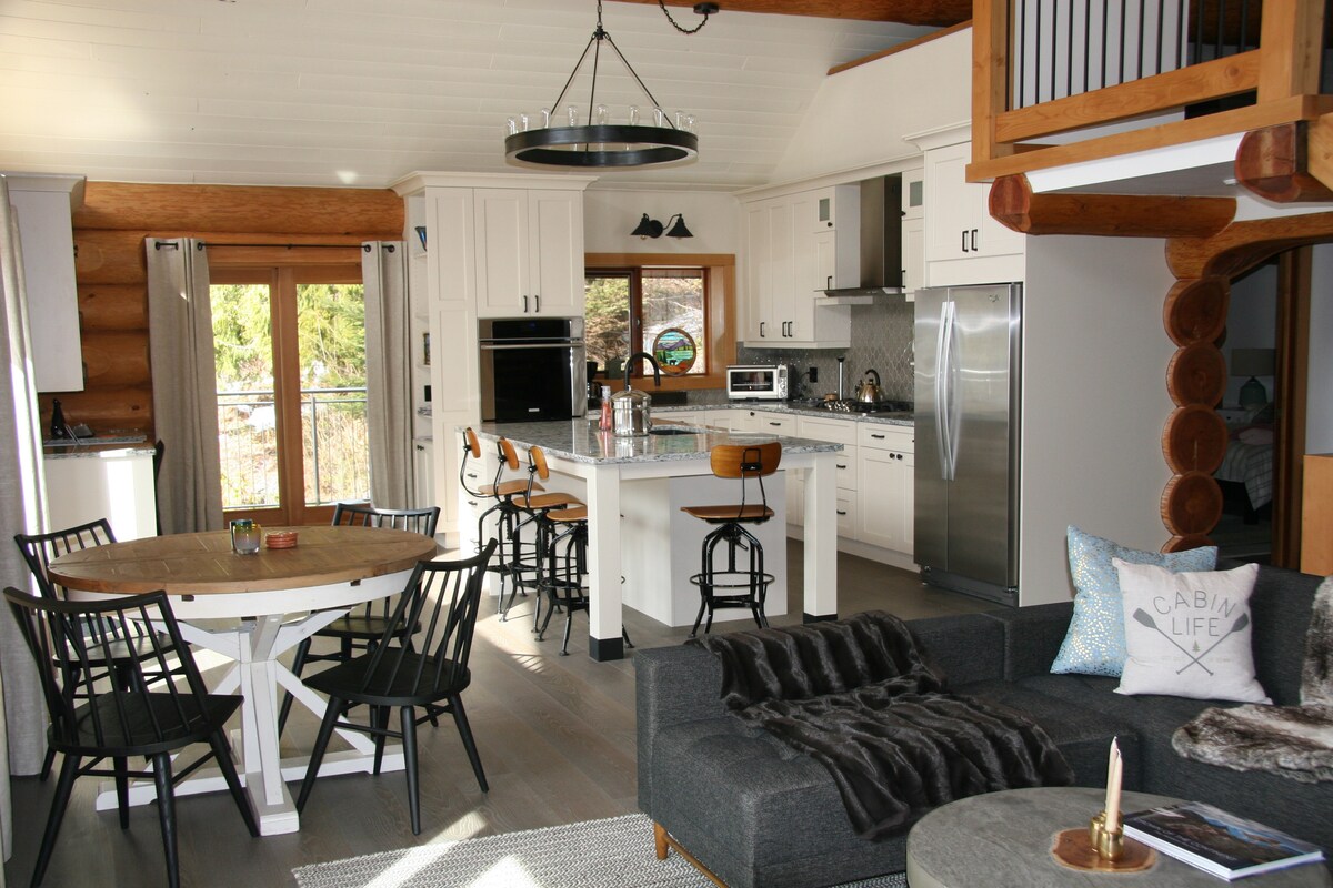 Þessi nýlega uppgerða 2 svefnherbergja íbúð er með sveitalegan sjarma. Það er neðri hæðin á sérsniðnu timburhúsi og er með opnum bjálka- og steininnréttingum, á 5 skógarreitum, rétt fyrir utan bæinn Golden, BC. Þarna er fullbúið, opið hugmyndaeldhús og stofa, fullbúið baðherbergi og tvö svefnherbergi. Eitt svefnherbergi er með queen-rúmi og annað svefnherbergið er með tveimur þægilegum tvíbreiðum rúmum sem eru tilvalin fyrir fjölskyldu eða 4 vini. Yfirbyggð verönd og eigið grill gera þér kleift að njóta útivistar.