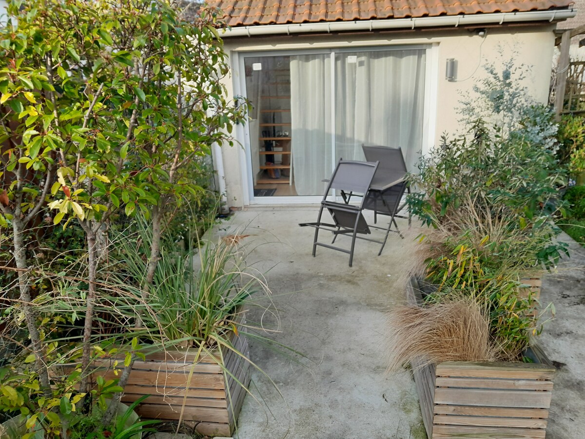 Cottage totalement indépendant au calme avec jardin Chambre, cuisine, salon sur jardin indépendant clôturé Tout équipé avec machine à laver séchante, wifi fibre optique, Netflix inclus gratuitement, et cuisine prête à l'emploi Lit double très confortable dans la chambre et canapé lit dans le salon. Draps fournis, comme à l'hotel Centre ville à 10min à pied A seulement 8km de paris Paris centre à 30 min en transport (Bus + métro) Parking gratuit et sûr dans la rue Bienvenue chez vous