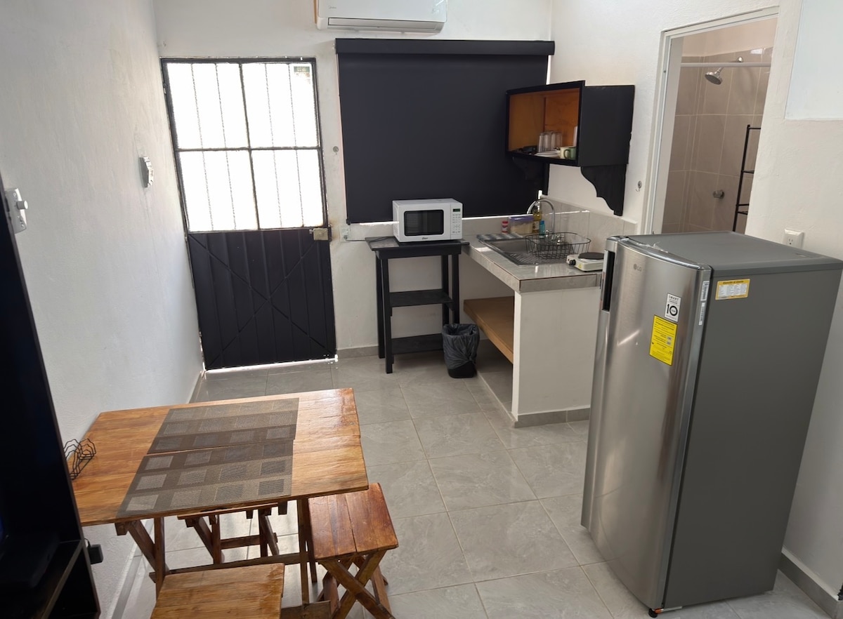 Just a 2.2. Km walk from the Puerto Juárez beach is this private studio located, ideal for getting to know the downtown area of Cancun and the quietest beaches in the area. You'll find just a steps away a local market, restaurants, coffee shops and the bus stop that will take you everywhere. - A solo 10 minutos caminando de la playa Puerto Juárez se encuentra este estudio privado, ideal para conocer la zona centro de Cancún y las playas más tranquilas de la zona.