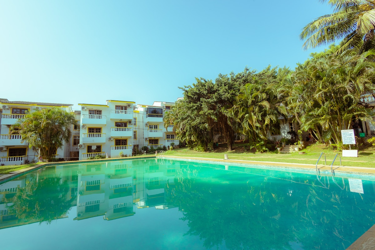 Stúdíóíbúðin okkar með útsýni yfir sundlaug er staðsett í fallega landslagi og ríkmannlegum Santana Beach dvalarstað við hina heimsfrægu Candolim-strönd sem gestir hafa gefið einkunn sem besta ströndin í Goa. Hann er með opna hæð með svefnherbergissvæði, risi með svefnsófa og baðherbergi innan af herberginu. Það er með stóran glugga frá gólfi til lofts á öðrum endanum með útsýni yfir glitrandi sundlaugina og einkasvalir á hinum endanum.