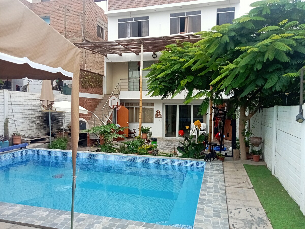 Allt gistirýmið - Fallegt hús í suðurhluta Lima, farðu með alla fjölskylduna og vini á þennan ótrúlega stað með mörgum áhugaverðum stöðum og öllum þægindum til að skemmta sér, slaka á og skemmta sér vel! Við erum með fullbúið grill- og eldhússvæði, poolborð, íþróttaleiki, strönd, arinn, eldstæði, kvikmyndahús, sundlaug og borðspil þér til skemmtunar!
