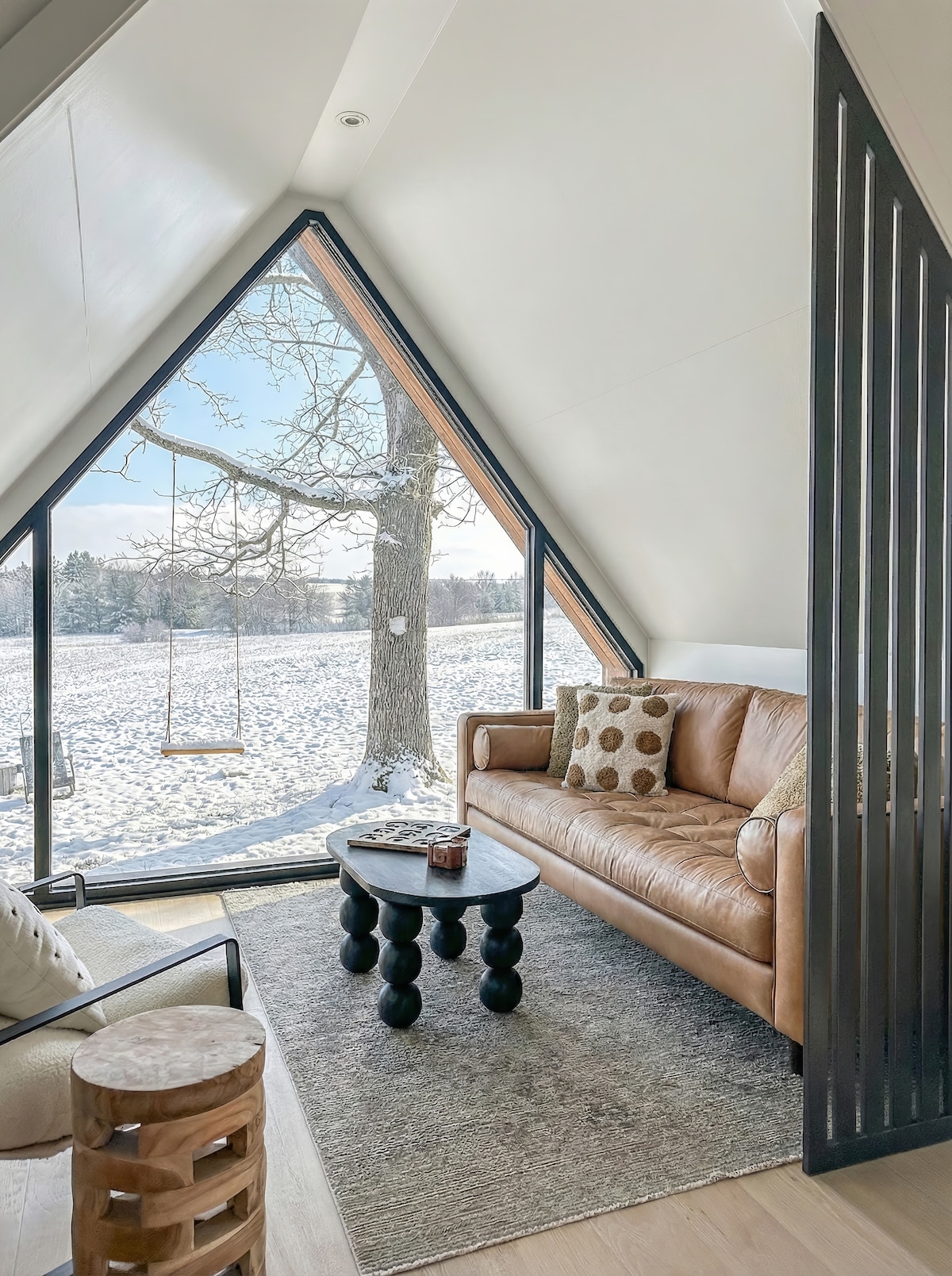 Verið velkomin í þennan heillandi A-ramma kofa í náttúrunni. Þessi nútímalegi A-ramma kofi er fullkominn fyrir rómantískt frí eða kyrrlátt afdrep og býður upp á allt sem þú þarft til að slaka á og tengjast aftur hvort öðru og náttúrunni. Aðalatriði: - Heitur pottur með viðarkyndingu - Breeo eldstæði og fylgihlutir fyrir eldun - Trjásveifla - Rúm í king-stærð með Samsung Frame TV - Bókasafn með sérvaldum bóka Náttúran umlykur þig og þú munt líklega sjá dádýr, kalkúna, íkorna, fugla og mörg önnur dýr. Njóttu vel!