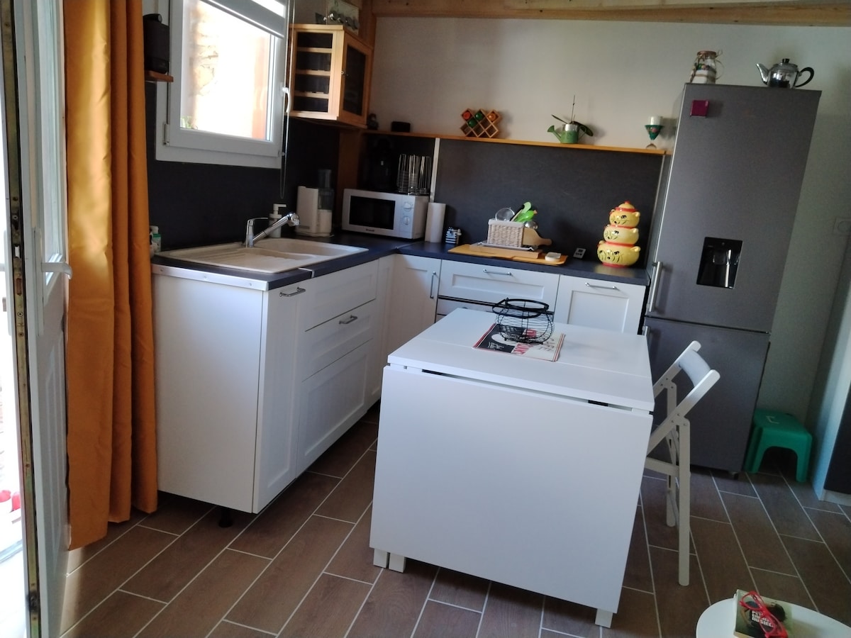Í friðsælu þorpi í 5 mínútna akstursfjarlægð frá miðbænum. Hér er fallegt útsýni yfir MAURIAC og sveitina. Gönguleiðir, vatn og golf eru fótgangandi. Stofa: 37 m2, skýr með mjúkum og afslappandi litum með mjög vel útbúnum eldhúskrók og þægilegu slökunarsvæði. Svefnherbergi: u.þ.b. 10m2, hlýir eða pastellitir með tvöföldum rúmum. Baðherbergi: 6 m2, sturta, vaskur, salerni og geymsla.