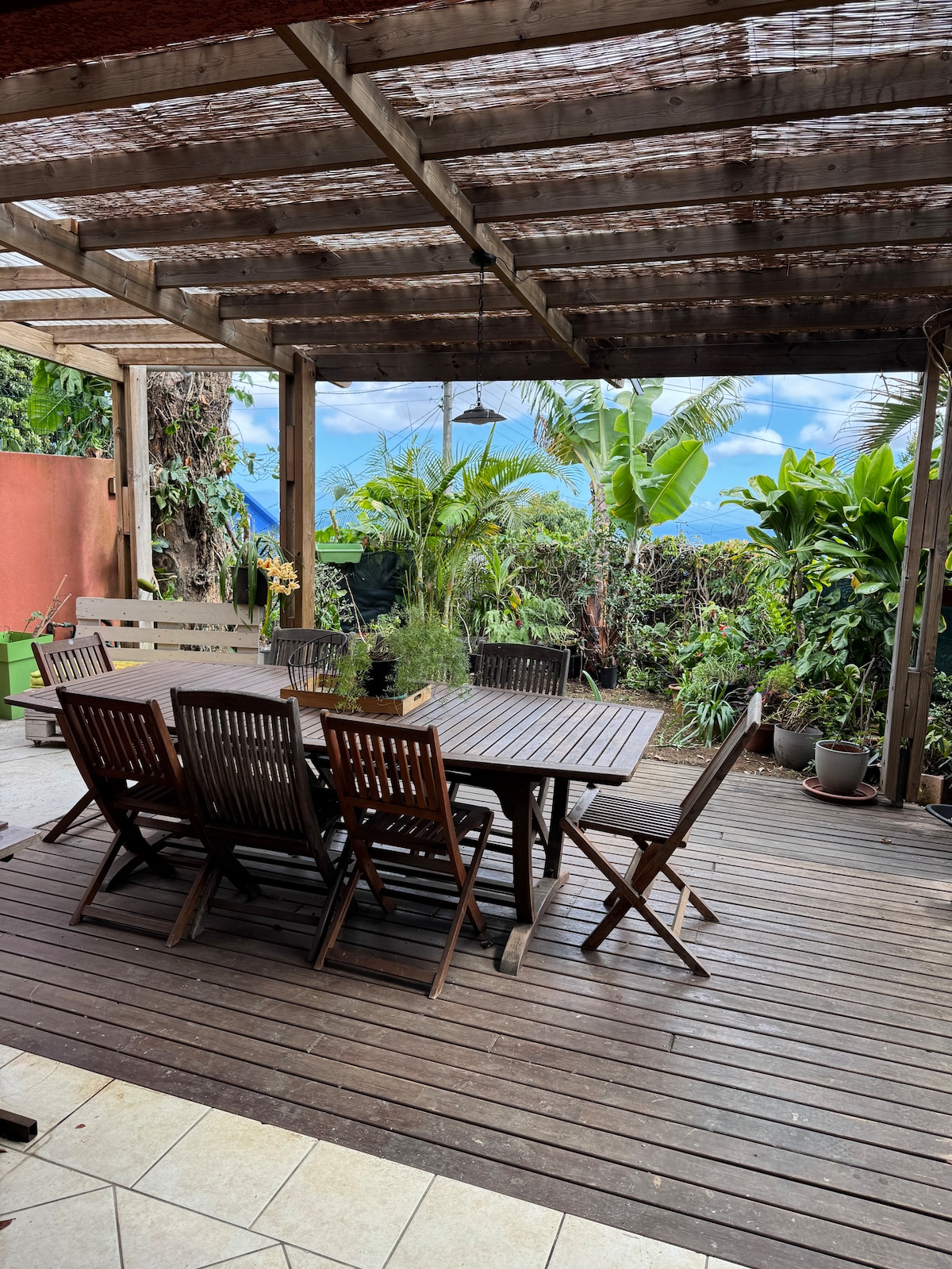 Sjálfstæð gistiaðstaða í kyrrlátu og góðu lofti á gróðureyju. Svefnherbergi sem er 19 m2 uppi (rúm 140 cm), björt og vel loftræst og stofa (20 m2) á jarðhæð með fullbúnu eldhúsi. Allt parketlagt. Skyggð verönd og stór skógargarður. Sundlaug nálægt veröndinni í garðinum. Strendur í 15 mín fjarlægð og fjallstindur (Maïdo) í 40 mín fjarlægð.