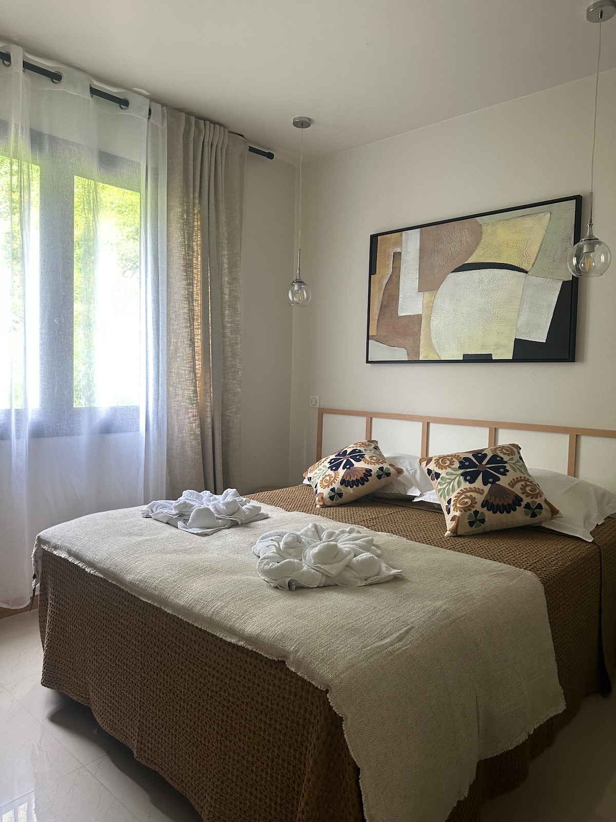Villan er staðsett í hjarta einkaeignar fyrir fjölskyldur við sjávarsíðuna. Friðsæla og örugga lóðin er staðsett í sveitarfélaginu Biguglia sunnan við Bastia. Nálægt öllum þægindum: - Flugvöllur 15 KM - Centre de Bastia 15KM - Verslanir 5 KM Villan samanstendur af eldhúsi sem er opið að stofunni með útsýni yfir verönd og garð. Önnur setustofa með rúmi. Tvö svefnherbergi með fataherbergi. Sturtuklefi með sturtu og snyrtingu. Uppbúin og loftkæld gistiaðstaða.