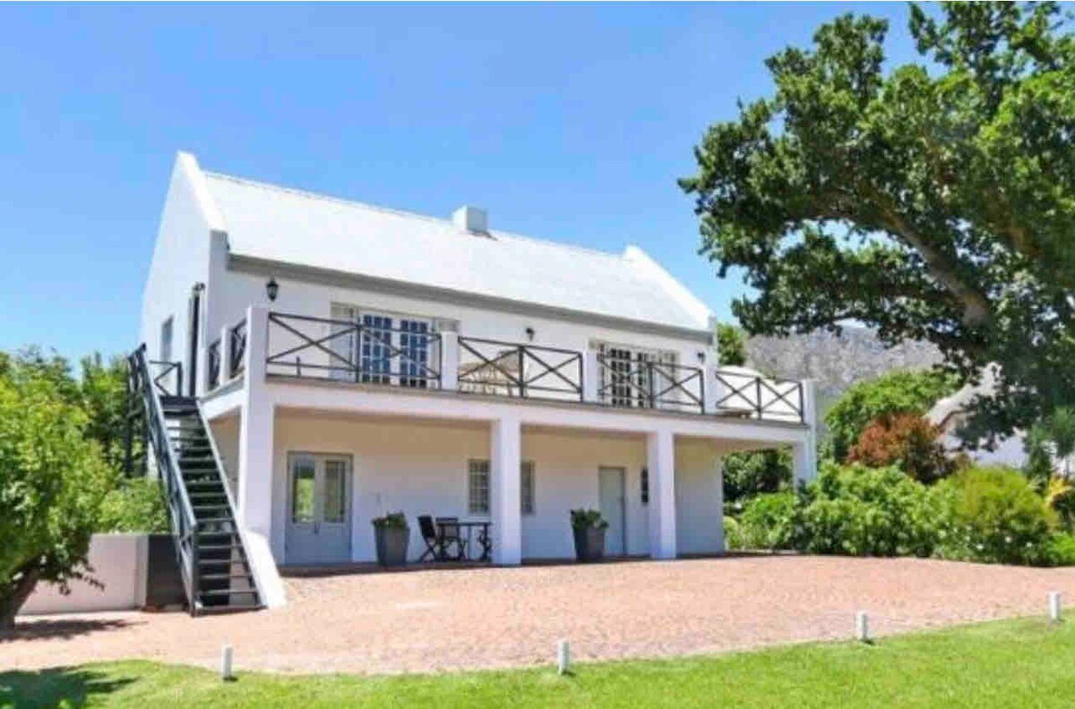 Heilsaðu deginum með morgunverði fyrir stórkostleg fjöll og útsýni yfir sveitina af sólríkum svölunum. Frá hvelfdu, viðarbjálkaþaki og sveitaskreytingum, til múrsteinseldsins og glóir með látlausum sjarma. Setja á 2 hektara af fallegum görðum, með ávaxtatrjám, víngörðum og umkringdur fjöllum. Sötraðu glas af kældu víni og njóttu fallegs sólseturs af stóru svölunum með einu besta útsýninu! Kældu þig í dýfingarlauginni og slakaðu á í skyggða sundlaugarsvæðinu eða á blautum vetrardögum krullaðu við hliðina á arninum innandyra. Eignin er afgirt, gestir hafa þar eigin aðgang og frítt að ráfa um eignina. Við viljum gefa gestum þar sitt eigið rými en annað hvort ég eða starfsmaður erum alltaf til taks og okkur er ánægja að aðstoða þig. Fasteignin er mitt á milli yfirgnæfandi fjalla og varanlegrar vínekra og er staðsett í Franschhoek, bæ sem er þekktur fyrir heimsklassa veitingastaði, vínsmökkun og náttúrufegurð. Heimsæktu Huguenot Memorial Museum til að fræðast um sögu staðarins. Uber er nýlega í boði í Franschhoek en hefur takmarkaða viðveru (eftir kl. 23:00/12 e.h.). Einnig er tuk tuk leigubíll í boði, vinsamlegast skoðaðu meðfylgjandi upplýsingar til að hafa samband. Vinsamlegast athugið að það er vingjarnlegur ungur björgunarhundur sem reikar frjálslega um eignina. Fasteignin er mitt á milli yfirgnæfandi fjalla og varanlegrar vínekra og er staðsett í Franschhoek, bæ sem er þekktur fyrir heimsklassa veitingastaði, vínsmökkun og náttúrufegurð.