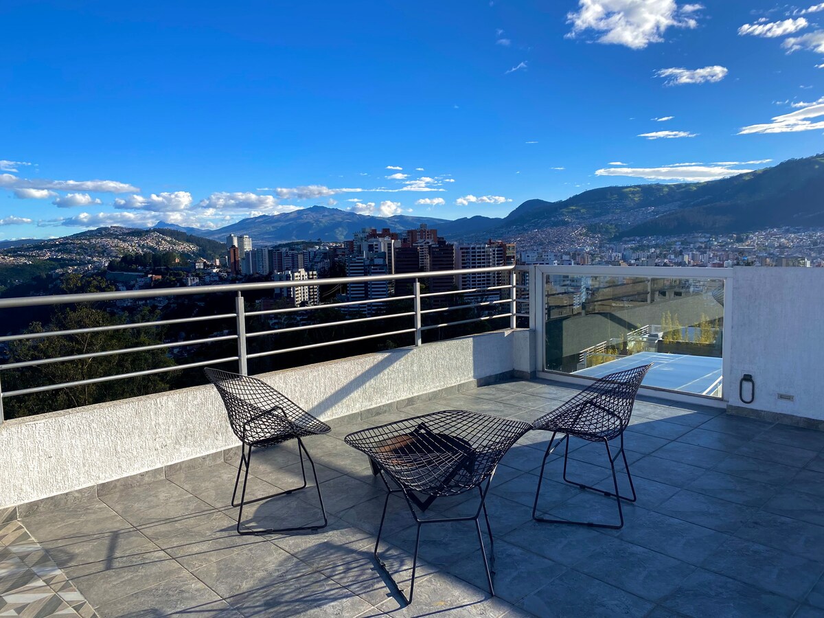 Verið velkomin í yndislegu lúxussvítu okkar á 20. hæð í nýrri og framúrstefnulegri byggingu! Þessi hæðarvin er hannaður til að veita þér fyrsta flokks þægindi (sum til afnota án endurgjalds og önnur með því að bóka). Fyrir grillunnendur erum við með grillsvæði með 360 útsýni yfir Quito og þeir sem ferðast með gæludýrin sín eru ánægðir með að vita að við erum gæludýravæn. Við erum einnig með snarlbar með ýmsum vörum og drykkjum gegn aukagjaldi