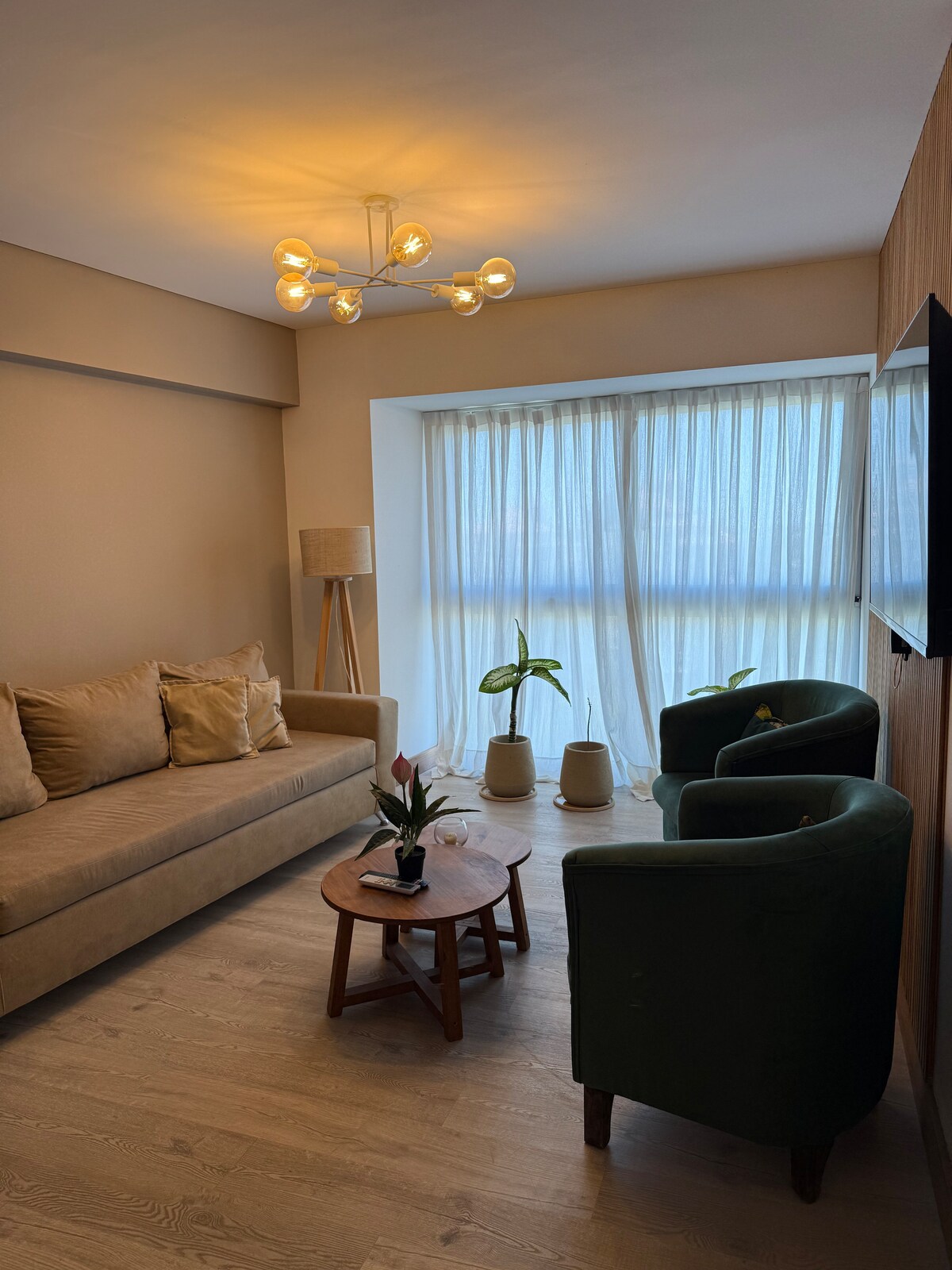 Skapaðu ógleymanlegar minningar á þessu heimili með svölum sem eru einstakar, nútímalegar og tilvaldar fyrir fjölskyldur. Það er í nokkurra metra fjarlægð frá veitingastöðum, matvöruverslunum, mathöll og öðrum stöðum. Við munum vera til staðar til að tryggja að dvöl þín verði sem best, hvort sem þú ert í vinnu eða frídögum. Það er með eigin bílskúr í kjallara byggingarinnar. Öryggi er til staðar allan sólarhringinn til að draga úr áhyggjum meðan á dvölinni stendur. Við erum með skjáklút og myrkvunargluggatjöld á öllum opum