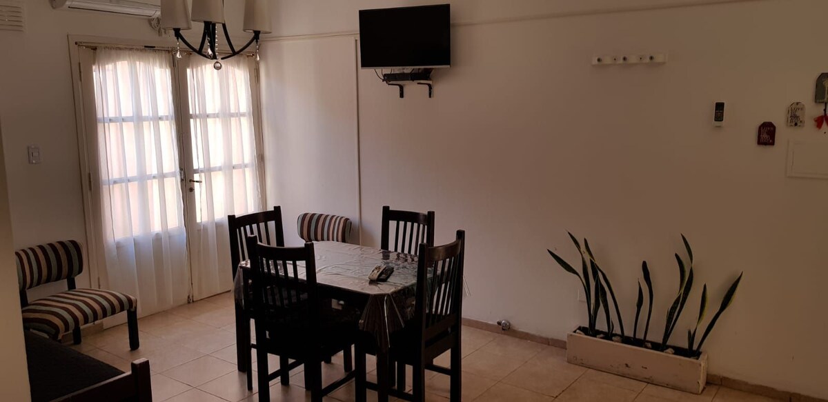 Komdu og njóttu frísins í þessu rólega og miðlæga rými. 50 metra fjarlægð með leikjum fyrir börn, strætó hættir, 200 metra Auditorium Juan Victoria, Parque de Mayo og Estadio Aldo Cantoni, Paseo Libertad (mathöll, hypermarket, verslanir). 600 metra frá Civic Center, 1200 metra frá Teatro del Bicentenario, 1500 metra frá Casa de Sarmiento og 1800 metra frá verslunarmiðstöðinni. Auðvelt er að komast að MTS of Circunvalación. Það er allt sem þú þarft fyrir góðan tíma. Svalir til að njóta útivistar.