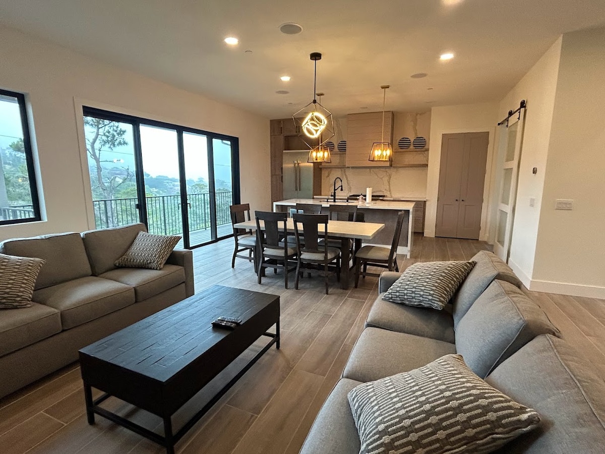 Welcome to our 4 bed/3 bath 3,000 sq. ft. contemporary home built in 2022. Enjoy the luxurious amenities in this spacious two-story house: brand-new furniture and TVs, state-of-art kitchen, high-end appliances, spa-like master bath, radiant heated flooring, built-in speaker system, fiber Internet, and stunning light fixtures throughout. Tesla charger in garage. Conveniently located minutes to beach, golf, restaurants and shopping. Have fun with the entire family and guests in this stylish place.
