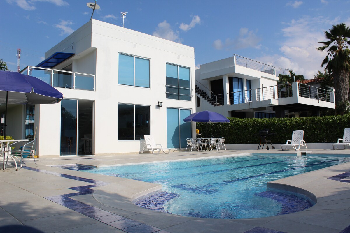 FALLEGT HÚS MEÐ ALGJÖRLEGA EINKALÖNDU, fyrir 14 manns í lokaðri íbúð, gervihnatta net -WIFI, sjónvarp með Direct TV, stórt rými með grænu garðsvæði, yfirbyggð bílastæði fyrir 4 ökutæki, 3 svefnherbergi með loftkælingu fyrir 4 manns hvert. Borðstofa og innbyggt eldhús með loftkælingu og áhöldum ,frystir, sjónvarp í sala, grill að kolasvæði, það er staðsett í 15 mínútna fjarlægð frá Melgar í gegnum Carmen de Apicala. ENDANLEGT VERÐ ER INNIFALIÐ í VSK