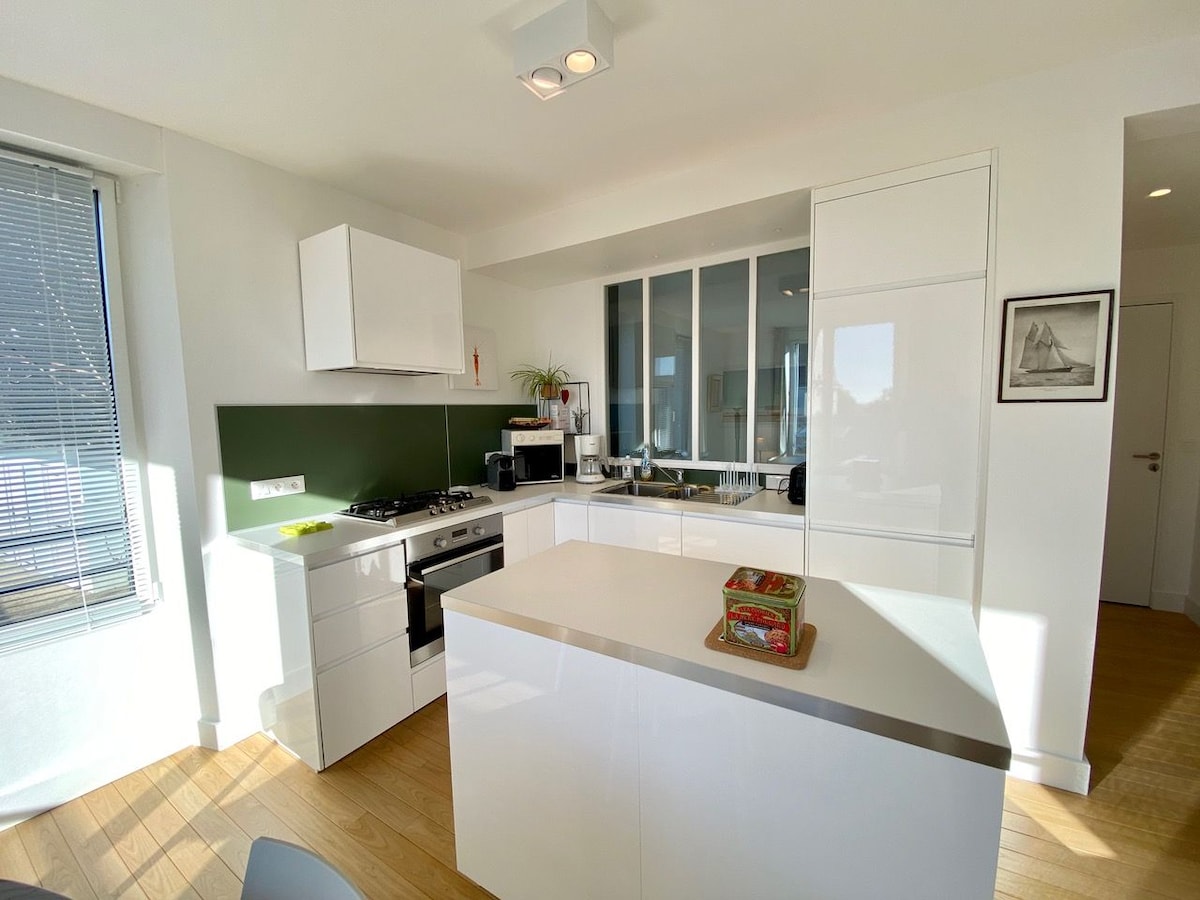 Enduruppgerð tvíbýli á 2. hæð í lítilli íbúð með 5 íbúðum og snýr að stórri strönd Carnac. Frábært útsýni til suðurs. Kyrrlátt en nálægt verslunum, börum, veitingastöðum, matvöruverslunum. Beint aðgengi að ströndinni. Engin lyfta. Einkabílastæði. Lök og handklæði á staðnum.