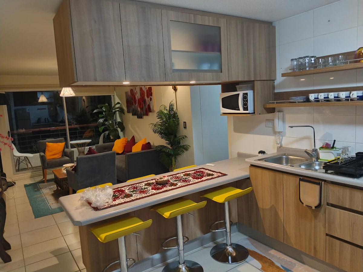 Þetta er hús þar sem eigendur Sergio og Marisol (vinalegt hjónaband) búa á 1. hæð . The private apartment available is located on the second floor of the house; it has a separate access for guests. Íbúðin er með 1 svefnherbergi með rúmi fyrir 2 og stofu . Fallegt einkabaðherbergi, eldhúskrókur (með laki). Lök , handklæði og hárþurrka. Frábær þráðlaus nettenging með: 800 megabætum ( Mb/s) og kapalsjónvarpi.