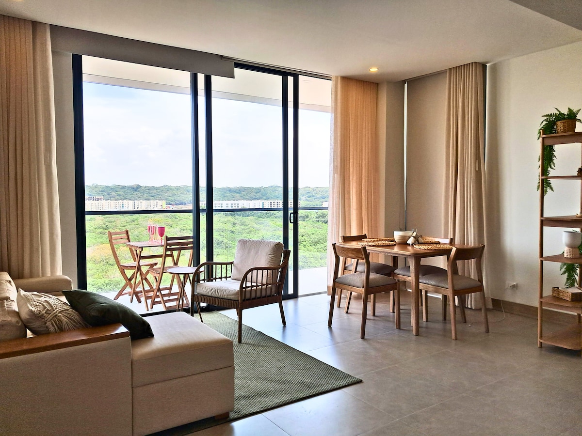 Disfruta una escapada frente al mar en este acogedor apartamento de 1 dormitorio, sala de estar con cocina abierta y 2 baños completos. Edificio Morros Epic, ubicado en el exclusivo sector de Morros en La Boquilla. Despierta con la brisa del Caribe, camina directo a la playa y relájate en un entorno donde todo está pensado para desconectarte. A solo 5 minutos del aeropuerto y 10 del Centro Histórico, estarás rodeado de mini mercados, droguerías, restaurantes y excelentes vías de acceso.