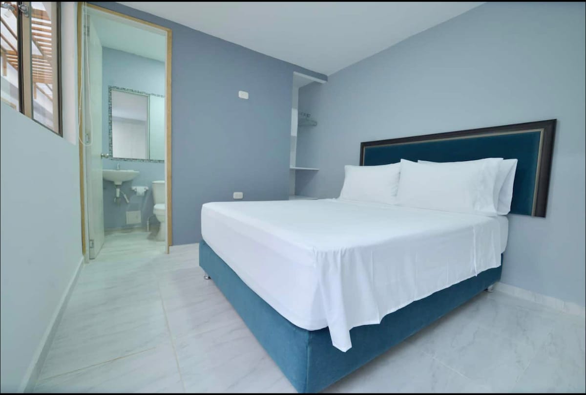 Al cruzar la puerta de Bahía Azul Boutique Hotel, una brisa marina te envuelve y te invita a descubrir la calma de Manga, uno de los barrios más auténticos y seguros de Cartagena. En esta acogedora habitación privada, el azul del mar inspira cada detalle: texturas suaves, aire fresco, WiFi y confort pensados para descansar o trabajar. A solo 5 minutos del Centro Histórico, aquí la magia caribeña se siente en cada rincón.