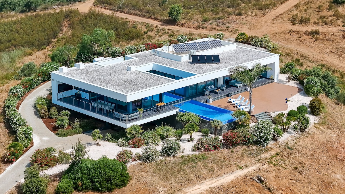 Villa privada nas colinas de Lagos, com piscina infinita, ginásio e vistas cinematográficas para as montanhas — concebida para total privacidade e glamour. O acesso faz-se por um caminho rural tranquilo, directo da estrada nacional, conduzindo-te a um mundo isolado de vidro, design e natureza. Aqui, as manhãs começam com yoga à beira da piscina, as tardes estendem-se ao sol em espreguiçadeiras de luxo, e as noites terminam com vinho debaixo das estrelas.