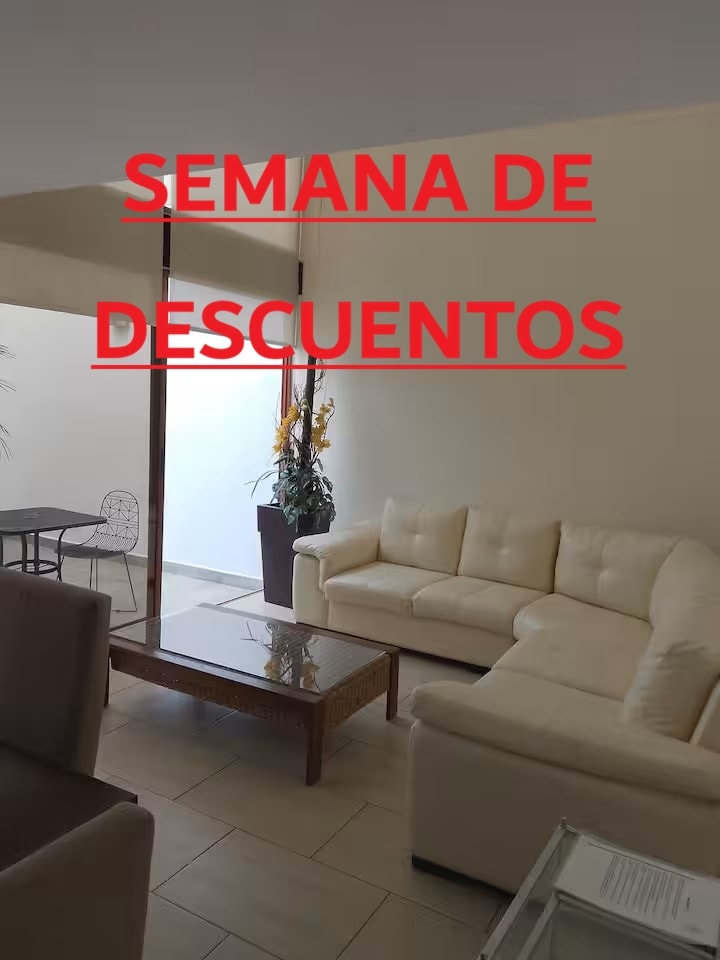 Enjoy an amazing stay in this bright, fresh, and super comfortable house. It has a lovely garden to relax or for your pets, fast WiFi for work, and a fully equipped kitchen so you can cook with ease. Located just steps from Explanada Mall and close to the Periférico, getting around is super easy. Our previous guests highly recommend it.
