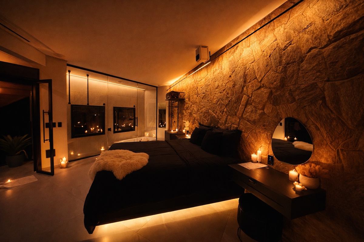 Stone Ark með einstakri hönnun með mini-laug í Mykonos-stíl og vatn, lýsingu, hljóði, þægindum og fágun sem svífur yfir fjöllum Gonçalves. Njóttu sólsetursins, stórfenglegs stjörnubjarts himins og röltu um gróskumikla akra í Green Mountains í Minas Gerais. „Að upplifa Mont Sha'n er einstakt og hvetjandi: ferðalag endurtengingar og endurnýjunar orku með stefnumarkandi staðsetningu fyrir þá sem elska vistvæna ferðamennsku, matargerð, slóða og fossa.“ 👇🏻