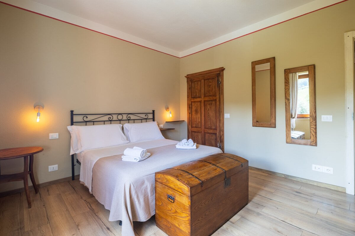Húsið nýtur sjaldgæfs og töfrandi útsýnis yfir Val d'Orcia og Monte Amiata sem tryggir hámarks næði. Innréttingarnar endurspegla sjarma Toskana-stílsins með antíkhúsgögnum og frágangi handverksmanna á staðnum. Hún er búin tvöföldu svefnherbergi, stórri stofu með stóru borði, fullbúnum eldhúskrók, tvíbreiðum svefnsófa fyrir framan arininn í stofunni. Veröndin fyrir utan gerir þér kleift að borða með litina í sólsetrinu sem bakgrunn.