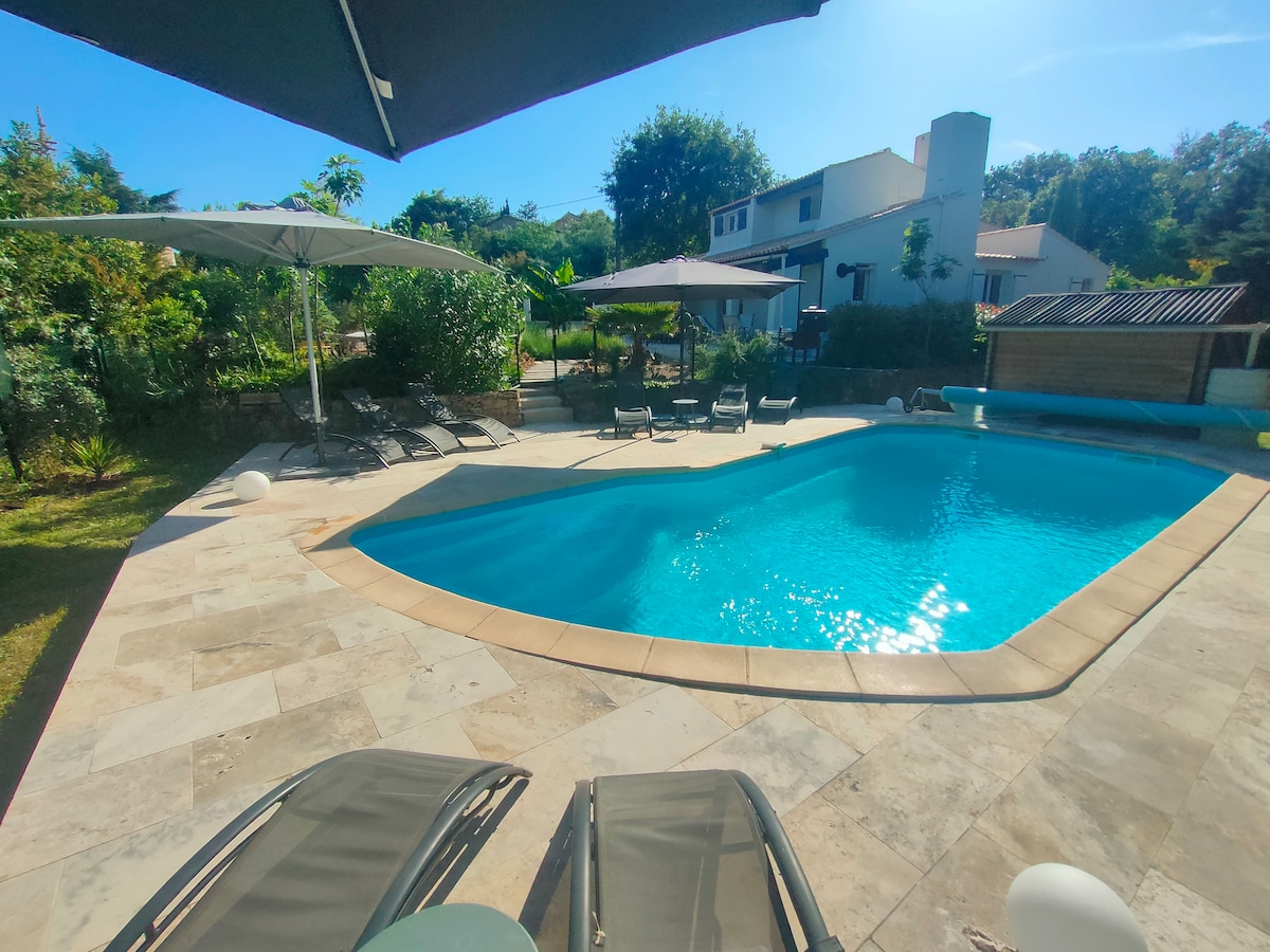 Located between sea and forest, with a magnificent view! The villa is located in Bagnols en Forêt, a quiet village perched in the mountains of Estérel 18 km from the coast (Fréjus / Saint-Raphaël). The house of 264m2, facing south, has a large living room (living room, dining room, kitchen, mezzanine), a beautiful terrace, a pool, 3 bedrooms (2 beds) of more than 25m2 and a fourth small room (2 beds) of 11m2. Each room has their own bathroom.