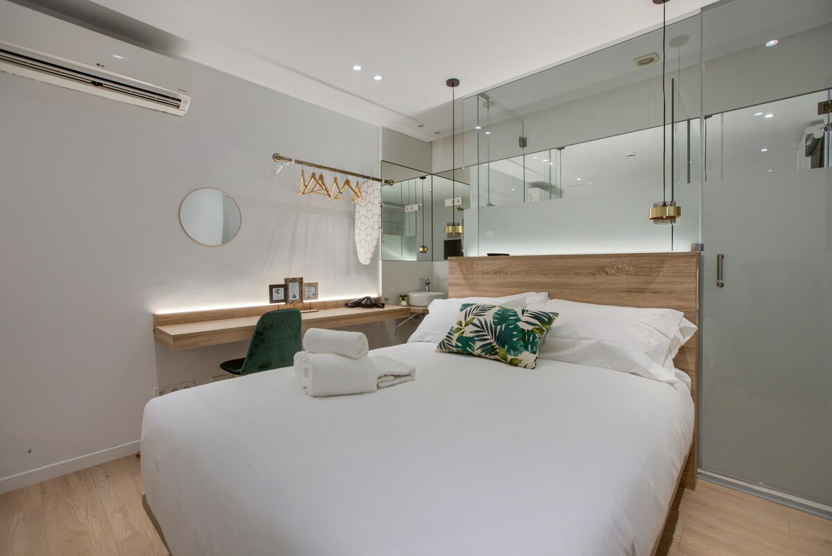Santa Sofia Suites by Break Point te invita a descubrir una nueva forma de hospedarte en el corazón de Madrid, en el emblemático barrio de Sol. Este hostal boutique reúne 13 suites diseñadas bajo el concepto bed&refresh, un refugio urbano pensado para quienes buscan descanso, confort y serenidad en pleno centro. Cada habitación combina diseño contemporáneo, elegancia y funcionalidad, ofreciendo un espacio ideal para relajarse y recargar energías tras un día explorando la ciudad.