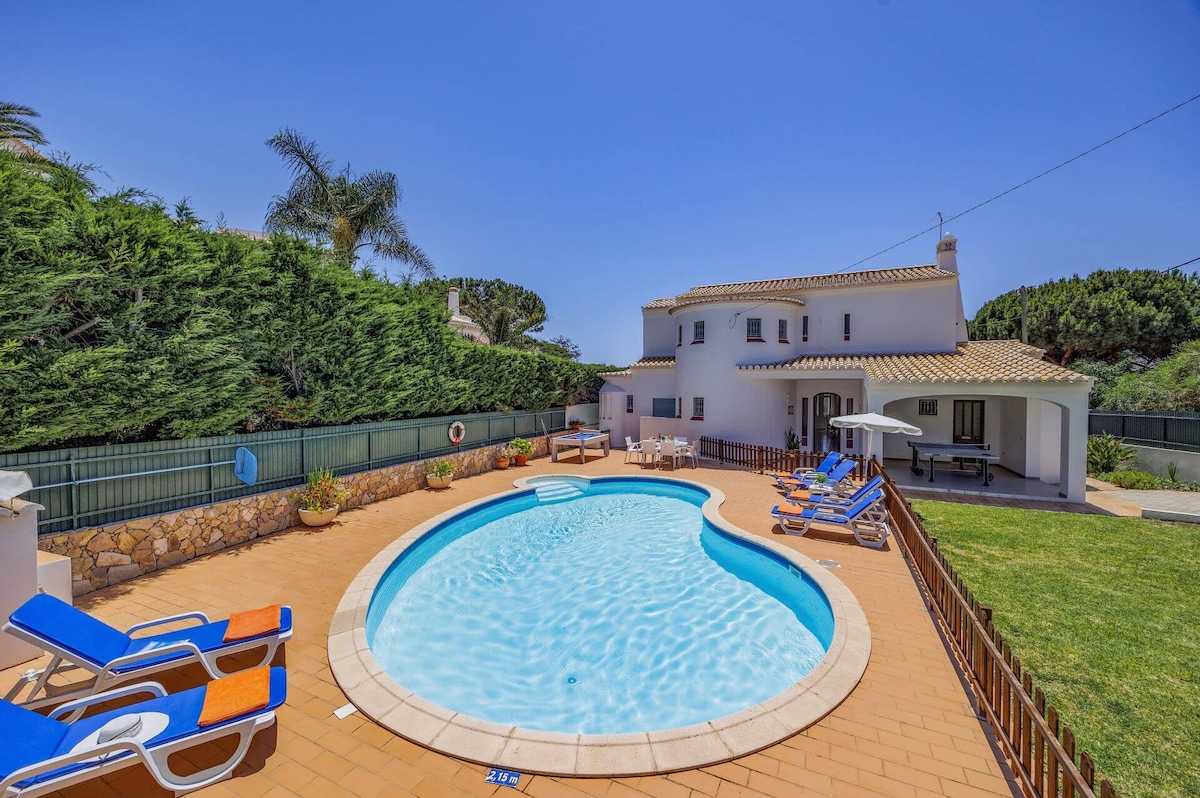 Uppgötvaðu fullkominn afdrep fyrir fjölskyldu og vini aðeins nokkrum mínútum frá Fuseta-strönd og náttúruverndarsvæðinu Ria Formosa. Hægt er að hita upp stórkostlega 5x10m saltvatnslaugina. Útilífið felur í sér borðkrók fyrir átta manns, ótrúlegt eldunarsvæði með Weber-gasgrilli og hefðbundnum portúgalskum grill ásamt mörgum setusvæðum og slökunarsvæðum í kringum yfirbyggða veröndina. Mjög þægileg rúm. Veitingastaðir, matvöruverslanir og þjónusta í nokkurra mínútna akstursfjarlægð.