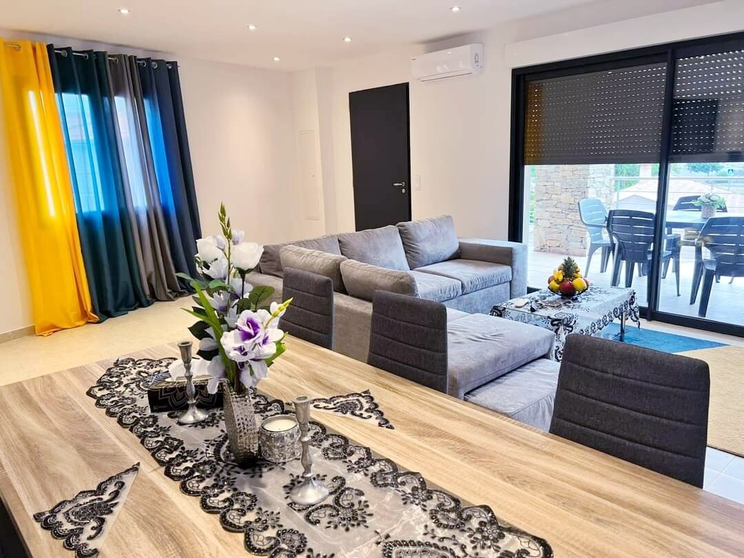 Einfaldaðu líf þitt í þessari friðsælu gistingu í miðborg foulli og nálægt öllum verslunum (bakarí, verslunarmiðstöð, lítið leiksvæði fyrir börn og aðrar verslanir) og 15 mínútur frá flugvellinum með bíl. Ströndin er um 5 mínútur með bíl og 15 mínútur á fæti. Heimilið er í 30 mínútna fjarlægð frá Bastia. Húsið er rúmgott, bjart, með loftkælingu og fullbúnu eldhúsi, stórri stofu, baðherbergi, tveimur salernum og loks 3 svefnherbergjum.