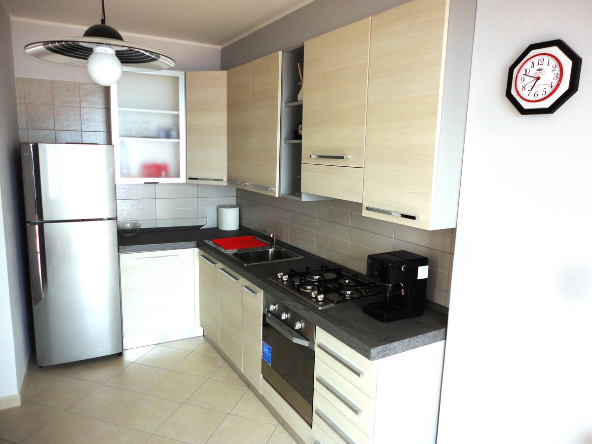 Ampio monolocale di circa 50 metri quadrati, per 2 persone composto da un ampio open space con letto matrimoniale con cucinino e zona pranzo e zona relax con un grande divano; l'appartamento ha un grande bagno con doppio lavabo ed è completato da un grande doccia e da una vasca. L'appartamento è al primo piano ed ha l'uso privato di un ampio balcone a piano (un tavolino, due sedie, due comode sdraio). Tassa soggiorno di € 3 a persona al giorno da pagare all'arrivo.