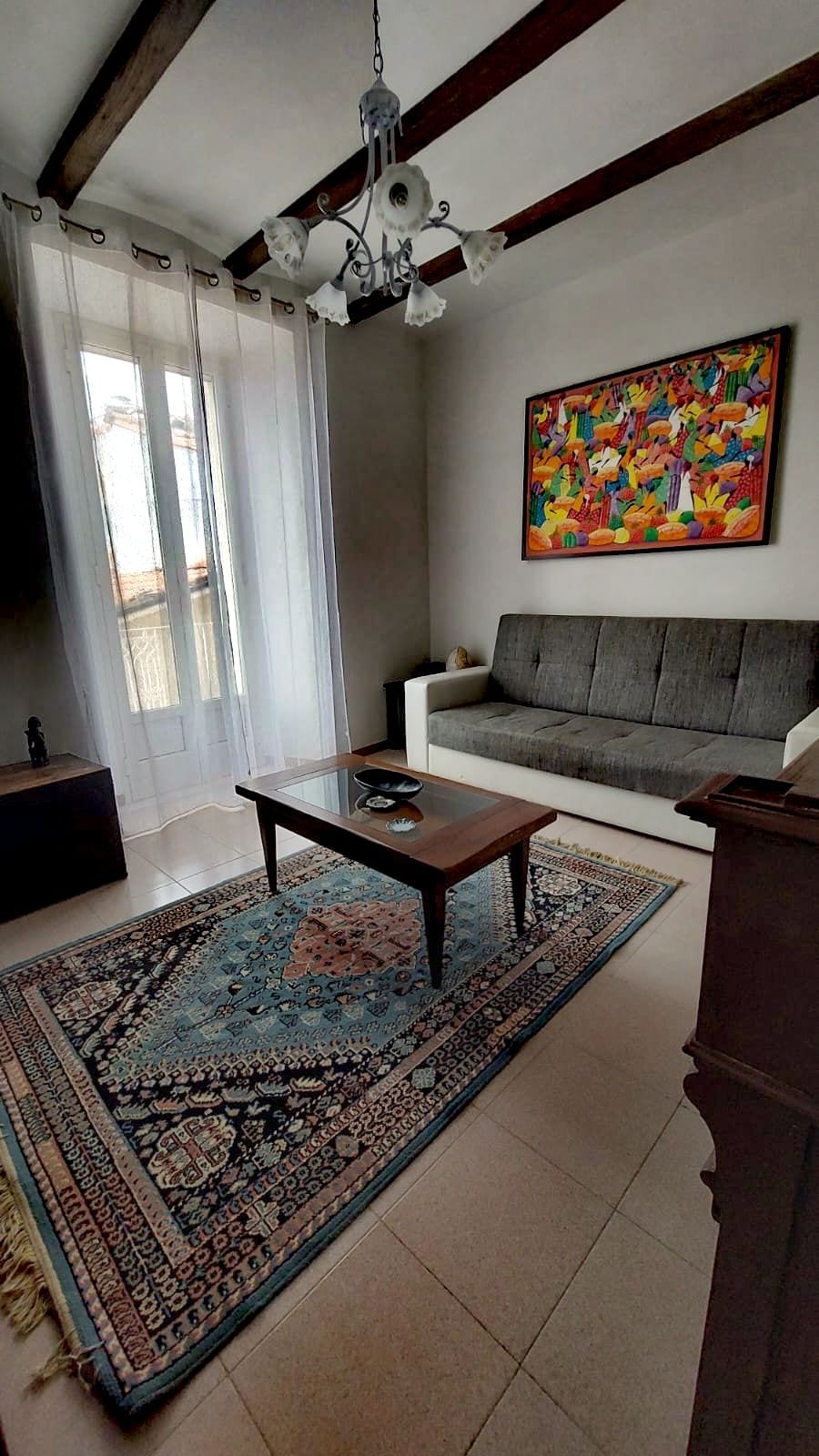 The apartment is 85 square meters and 50 square meters of terrace, furnished with table, sofas and umbrella. Renovated, it consists of 2 bedrooms with 2 double beds. Kitchen and living room in one room. Equipped with air conditioning and radiator heating, TV in one bedroom and living room, washing machine, dishwasher, iron, ironing board, cutlery, plates, soaps and shampoos. It is located 200 meters from the train station, in the surrounding area there are numerous public parking lots.