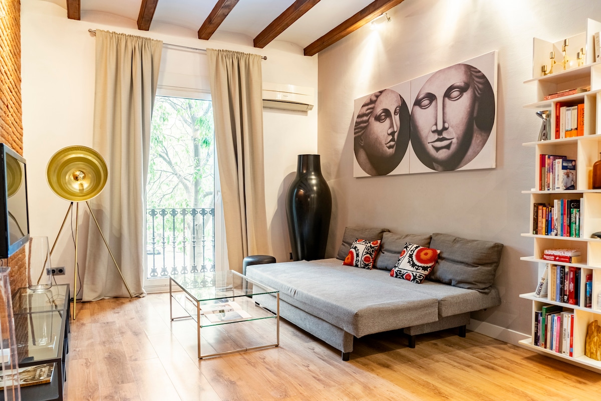 Sérstaklega. 🏡✨Stórkostleg 60 fermetra íbúð, nýuppgerð, með afslappandi og rómantísku andrúmslofti 💛 Búið öllum þægindum. Svefnpláss fyrir 4: 🛏️ Aðalsvefnherbergi með hjónarúmi (150x190 cm) 🛌 Annað svefnherbergi með tveimur einbreiðum rúmum (90x190 cm) Við hliðina á Sagrada Familia🏛️ Mjög góðar almenningssamgöngur 🚌