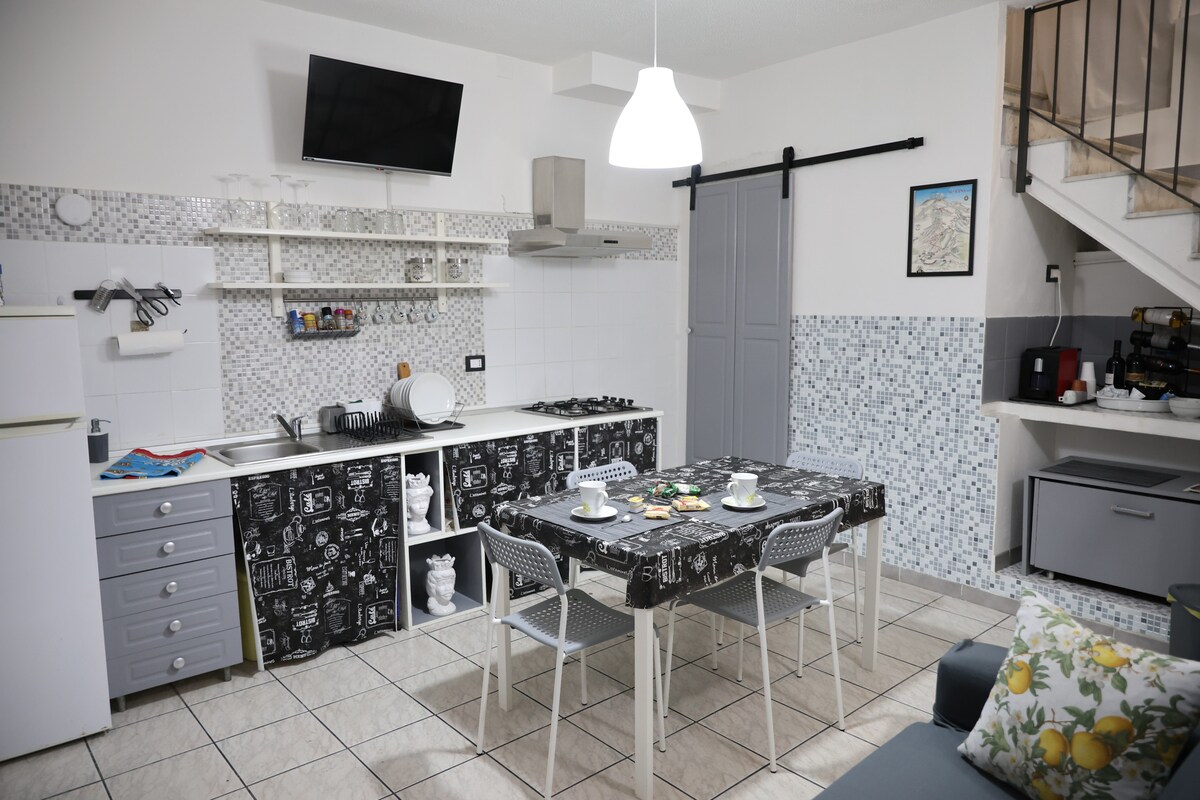 Þægileg íbúð í miðbæ Catania. Búin öllum þægindum. Frábært fyrir fjölskyldur, pör eða vinahópa sem vilja njóta borgarinnar og nágrennis hennar til fulls. Nokkrum skrefum frá Duomo með hinu fræga Liotru, „piscaria“ og fallegu Via Etnea, gerir þér kleift að hafa allt innan seilingar. Nýuppgerð, hún er skilgreind í hverju smáatriði: 2 hjónarúm, 2 baðherbergi, útbúið stofueldhús, svefnsófi, þvottahús og 2 skápar.