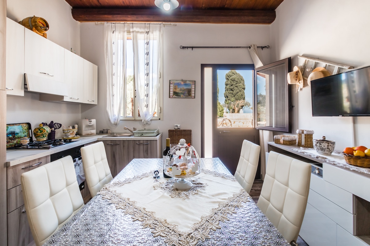 Casuzza duci er notalegt hús á stórfenglegum útsýnisstað með útsýni yfir tyrrahafið og fjöllin. Tilvalinn staður fyrir rómantískt par eða fjölskyldu sem elskar náttúru og að leita að ró. Tvö svefnherbergi með stórum gluggum og viftulofti opnuðust út í garðsvæðið og lýsandi stofa sem eykur viðarloft og mósaíkgólf. Eldhúshorn umkringt gluggum þar sem hægt er að elda og dást að gegnsæjum sjónum. Garður til að slaka á í hamac og fullbúið grill.