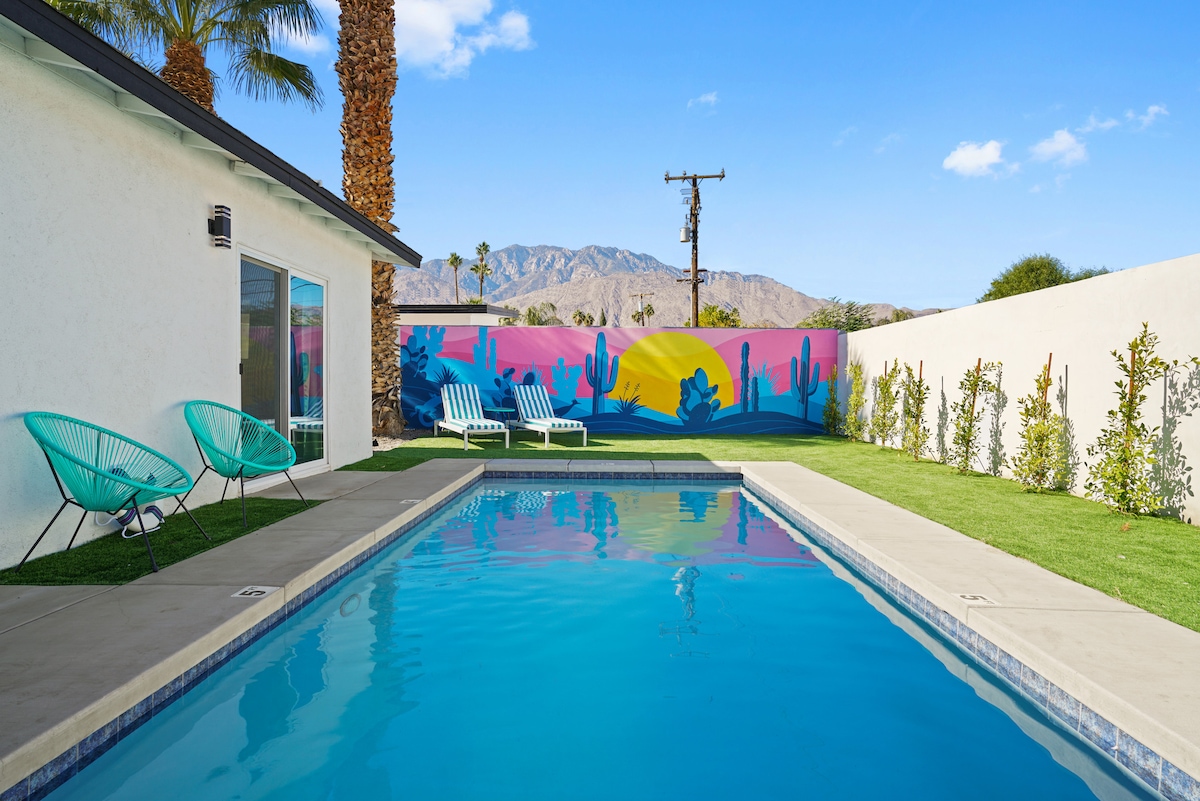 Retro-Lux Retreat w/pool-Spa 1 Block from El Paseo