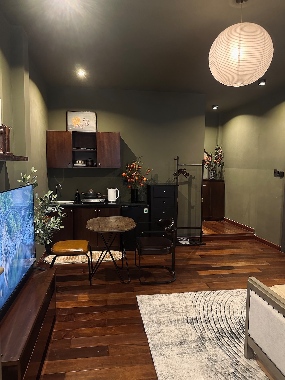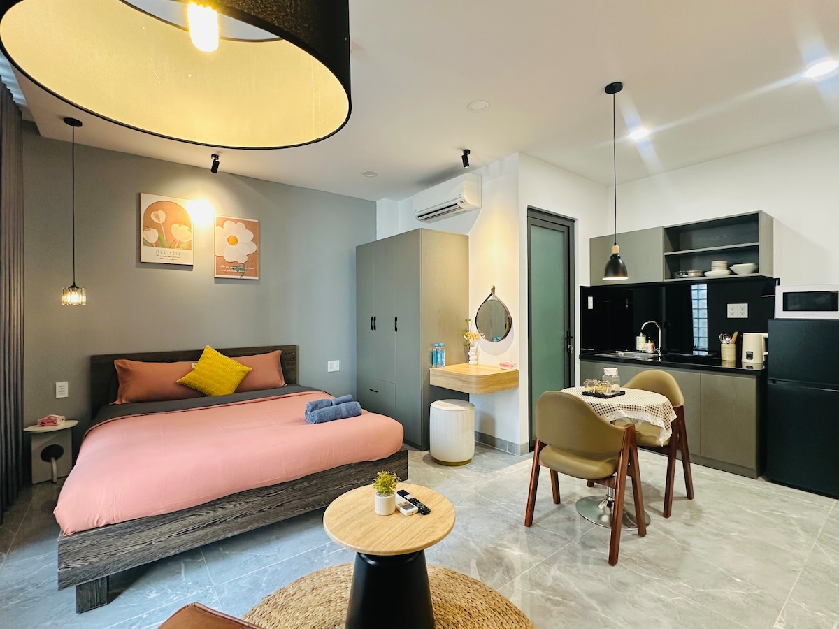 Einstök 60 fermetra stúdíóíbúð í hliðargötu í hjarta Saígon, sem býður upp á bæði næði og þægindi. Staðsett á annarri hæð raðhúss, rétt fyrir ofan notalega BeanThere Café á jarðhæðinni, er það fullkomið fyrir gesti sem elska stílhreint líf og frábært kaffi í göngufæri. Aðeins nokkrar mínútur frá þekktum kennileitum, verslunarmiðstöðvum og líflegu næturlífi. Hver gestur fær ókeypis morgunverð á hverja nótt (1 máltíð + 1 drykkur). Ókeypis þrif fyrir gistingu sem varir í meira en 4 nætur með eins dags fyrirvara.