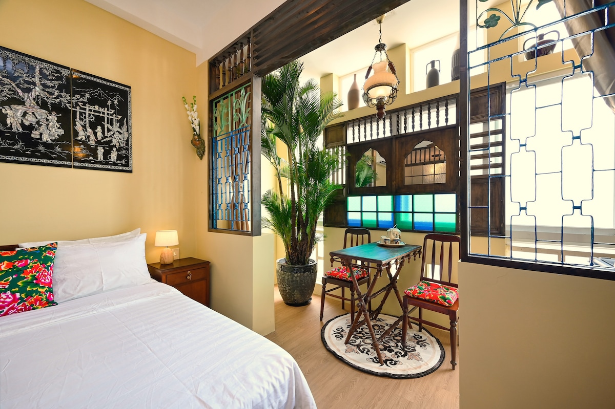 Einstök 60 fermetra stúdíóíbúð í hliðargötu í hjarta Saígon, sem býður upp á bæði næði og þægindi. Staðsett á annarri hæð raðhúss, rétt fyrir ofan notalega BeanThere Café á jarðhæðinni, er það fullkomið fyrir gesti sem elska stílhreint líf og frábært kaffi í göngufæri. Aðeins nokkrar mínútur frá þekktum áhugaverðum stöðum, verslunarmiðstöðvum og næturlífi. Hver gestur fær eina máltíð (1 matur og drykkur) á kaffihúsi á neðri hæð/á hverri bókaðri nótt. Ókeypis þrif fyrir gistingu sem varir í meira en 4 nætur með eins dags fyrirvara.