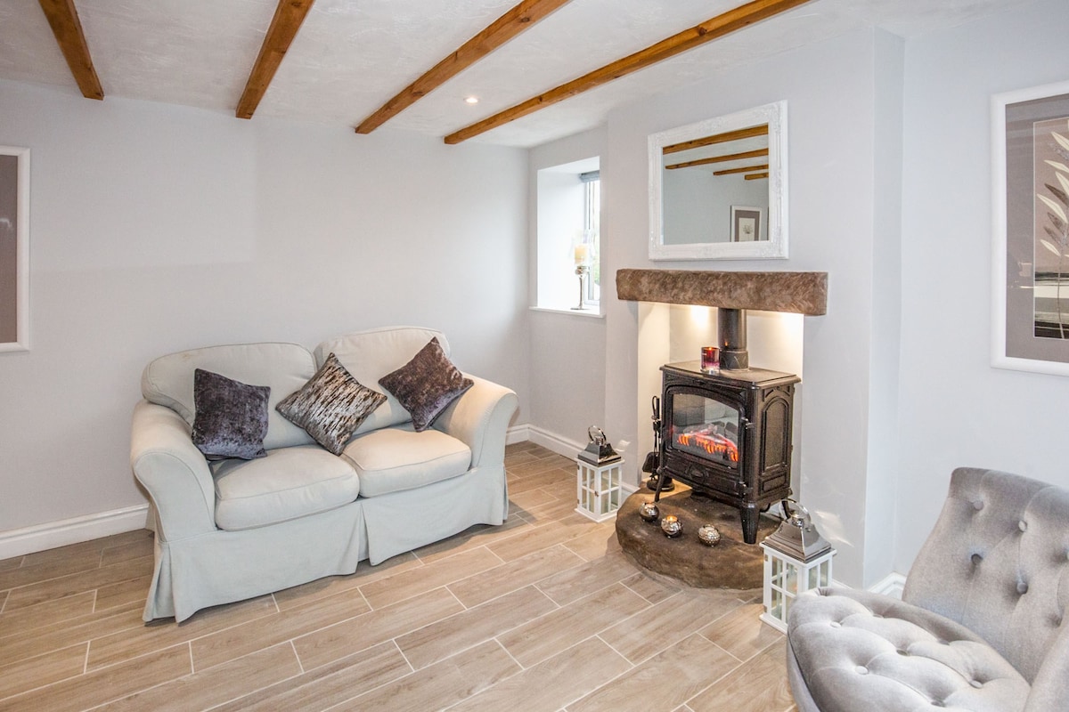 Lúxus 2 rúm bústaður á friðsælum stað við jaðar Peak District-þjóðgarðsins. Jakkaföt fyrir 4 +2 börn. Endurnýjuð í hæsta gæðaflokki. Frábærar gönguferðir, hjólreiðar og Alton Towers við útidyrnar og hið þekkta Yew Tree Inn við enda vegarins. Þetta er tilvalinn staður fyrir afslappað frí í landinu. *Æskilegar dagsetningar ekki í boði eða þarftu meira eða minna pláss? Vinsamlegast leitaðu að annarri eign í nágrenninu, C17th Family House at Doveridge, Derbyshire, þar sem er pláss fyrir 1-12.