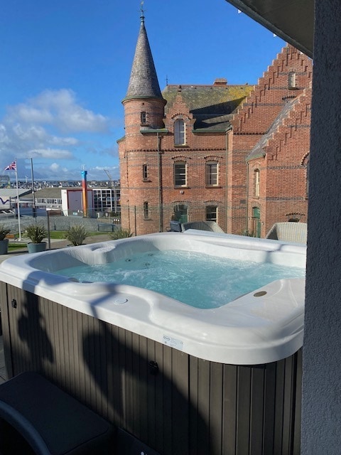 This luxury suite is a self contained unit located beside the main Antrim House Guest Accommodation. It boasts a large private balcony with hot tub for guests sole use, onsite private parking and is only a 2 minute walk to Portrush's sandy beaches, a 5 minute walk to the Royal Portrush Golf Course with plenty of shops and restaurants on your doorstep. We are also 10/15 minute drive to the World famous Giant's Causeway, Bushmills distillery, Dark hedges and Dunluce Castle.