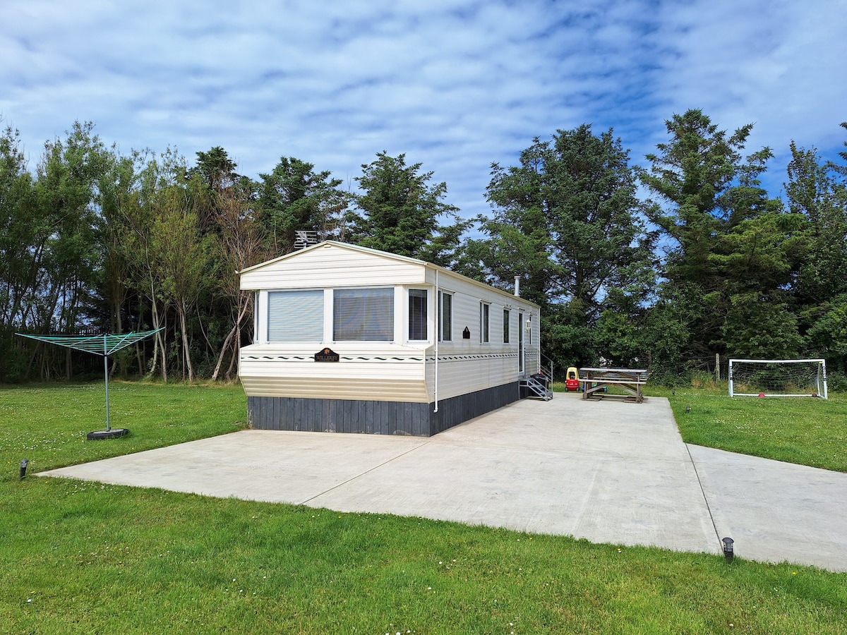 Cosy, peaceful coastal caravan with mountain views
