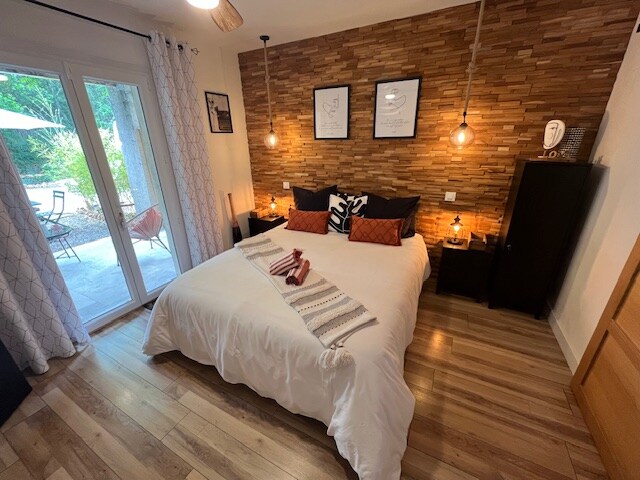 LA NUIT DES secrets is an independent villa of 70M2 located in Roquebrune-sur-Argens, fully equipped with spa, XXL walk-in shower, sauna, billiard, queen size bed and many sets of lights in order to create the atmosphere of your choice to spend a romantic and timeless moment with your loved one in this little cocoon of love 💋💋