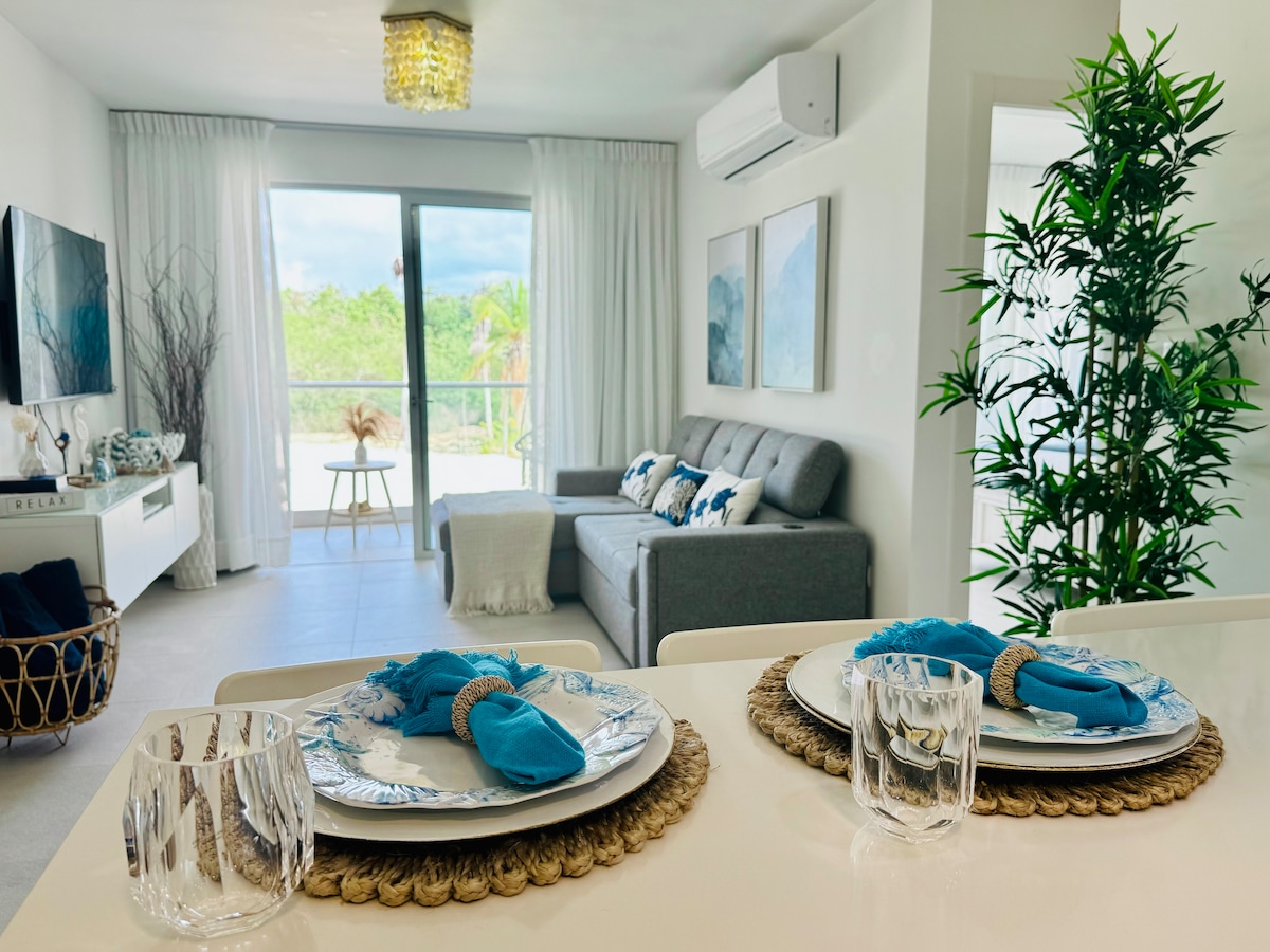 Þessi lúxus íbúð við ströndina er staðsett á Playa Nueva Romana South Beach. Það er fallega skreytt svo þú finnur virkilega fyrir karíbahafsfríinu. Íbúðin hefur allt sem þú þarft til að gera dvöl þína ánægjulega. Það er með loftkælingu, þægilegt queen-rúm, fullbúið eldhús og stofurými með 55 tommu sjónvarpi. Fullur aðgangur að sameiginlegu svæði fyrir sundlaug, líkamsrækt og kvöldverð/ grill /pítsuofn.