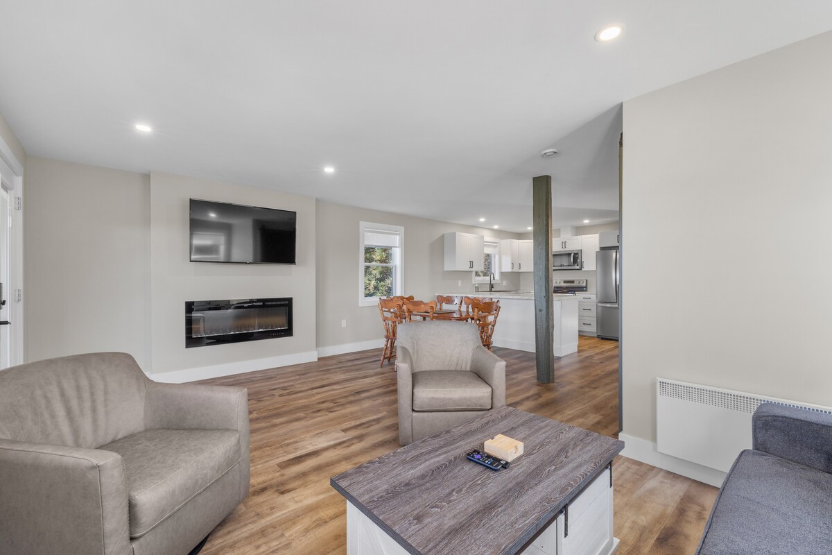 Stökkvaðu í frí til Seawood Haven — nýbyggðs, einkaskógarstaðar í hjarta Seawood Estates. Þessi nútímalega skáli er umkringdur trjám og í stuttri göngufjarlægð frá vatninu og býður upp á fullkomna blöndu af ró og ævintýrum. Njóttu kvöldanna við útiarineldinn, slakaðu á í íburðarmikilli heitum potti og slakaðu á í rými sem er hannað fyrir þægindi og tengsl. ✔ Heitur pottur + Útieldstæði ✔ Göngustígur að sjónarmiði við ströndina og sandölduna ✔ Svefnpláss fyrir 8 þægilega ✔ ~5 mín. að Cavendish-strönd og golfvelli