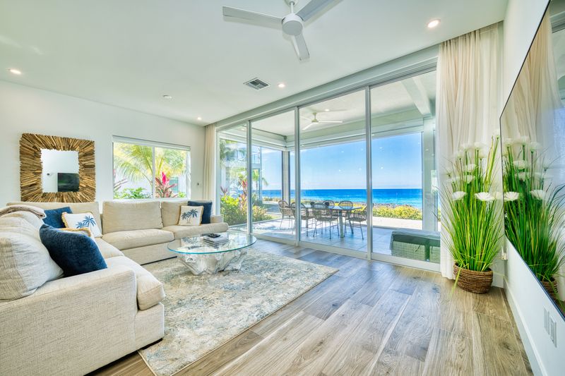 Nútímalegt heimili við vatnið með þremur svefnherbergjum og þremur baðherbergjum sem býður upp á lúxus, þægindi og ótrufluð útsýni yfir hafið. Njóttu morgunkaffisins á meðan öldurnar rúlla inn og ljúktu deginum með því að drekka vín með stórkostlegu sólsetri Karíbahafsins frá einkasvölunum þínum. Í samstæðunni er sundlaug, heitur pottur, líkamsræktarstöð og setustofur. Hún er staðsett í hlýlegu hverfi í aðeins tveggja mínútna göngufæri frá vinsælum tiki-bar Cayman. Flottur afdrep sem hentar fjölskyldum, pörum eða vinum sem leita að fágaðri eyjagistingu.
