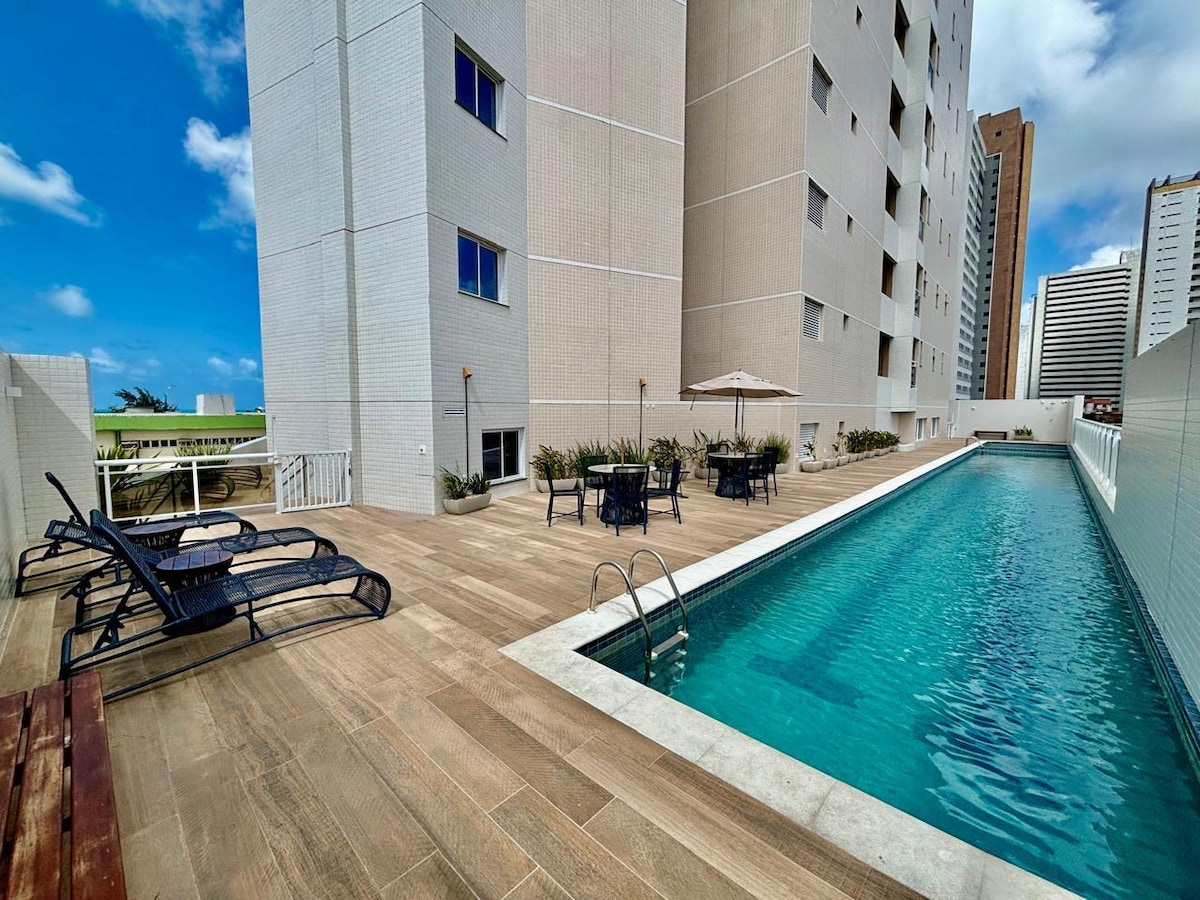 Apto novo pé na areia c/ vista p/ o mar, 5 min do Beach Park. 2 quartos (c/ tv, camas/Queen e casal, ar cond. e 2 banheiros c/ água quente). Cozinha americana c/ cooktop e forno, geladeira. Sala de estar c/ sofá e Smart TV. Varanda c/ cortina de vidro, vista mar, rede de proteção, wi-fi, blackout nas cortinas. Piscina e sauna c/ saída p/ o mar, churrasqueira, academia, brinquedoteca, sala de jogos, quadra de volêi, bangalôs, elevadores e estacionamento grátis. Aceitamos animais pequeno porte.