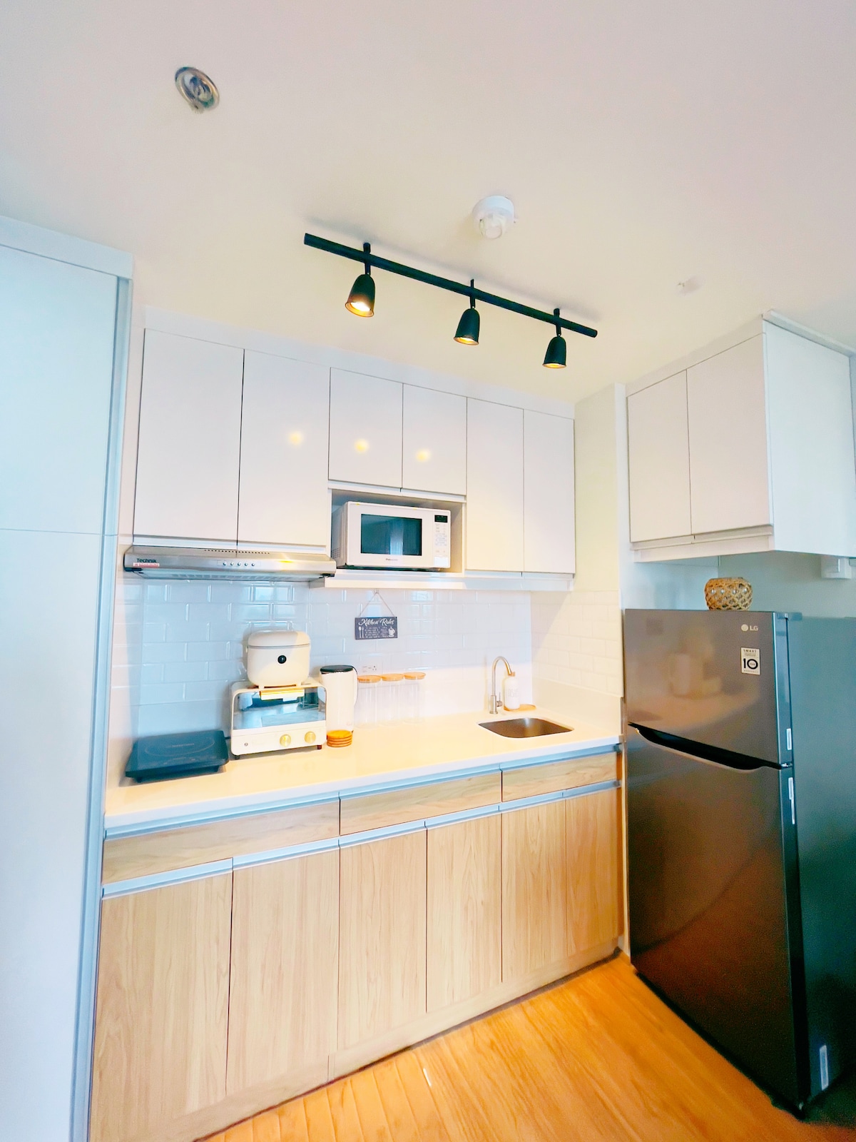 STAÐSETNING: The Median - 1 Bedroom Unit with Balcony at 9th Floor (up to 4 guests max) Fullbúin húsgögnum með 1 rúm af queen-stærð 2 single extra matresses Kæliskápur Sófasett Borðstofuborð með stólum Svalaborð með stólum Snjallsjónvarp Hrísgrjónaeldavél Örbylgjuofn Ofnrist Vatnshitari Spanhellur Ryksuga Straujárn Hárþurrka Skolskál Eldhúsáhöld (t.d. skeið, gaffall, diskar, bollar, glös, vínglas o.s.frv.) EIGINLEIKAR BYGGINGAR: ✅Brunavarnir og sjálfvirkt úðakerfi ✅100% vararafall