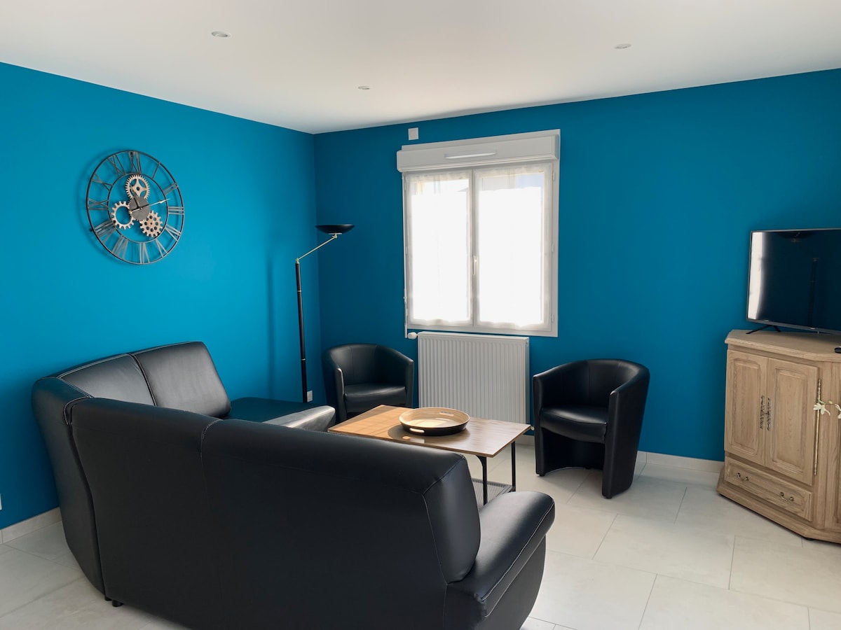 Skemmtilegur, rólegur bústaður, 2 klst. frá París og nálægt Châteaux de la Loire (Blois, Cheverny, Chambord o.s.frv.) og dýragarðinum í Beauval (45 mín.). Miðbær Blois í 10 mín akstursfjarlægð, verslanir í nágrenninu. Gisting á einni hæð með verönd, garði, heilsulind og pláss fyrir 4 manns + 1 barn. Ókeypis bílastæði. Full þægindi (eldhús, stofa, svefnherbergi, baðherbergi). Reykingar bannaðar utandyra. Rúmföt/salernislín fylgir. Þráðlaust net í boði. Uber Borðar mögulega sendingu.