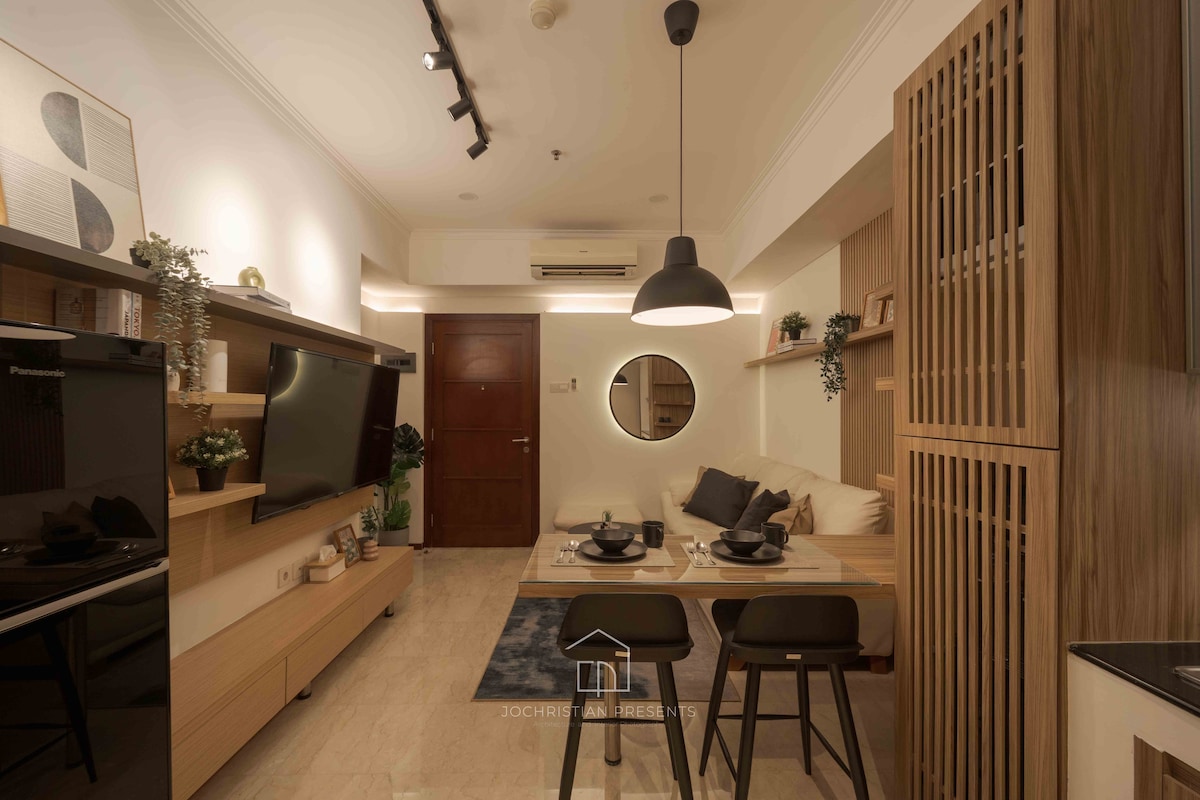 Retreat into a tranquil oasis where clean lines, natural materials, and a harmonious color palette create a sense of serenity. This thoughtfully designed Airbnb is a haven of simplicity and functionality, offering a peaceful escape from the urban bustle. With direct access to Central Park Mall, you’re just a few steps away from a world of shopping, dining, and entertainment. Whether you’re in the mood for a shopping spree or take a walk in Jakarta Aquarium, everything is at your doorstep.