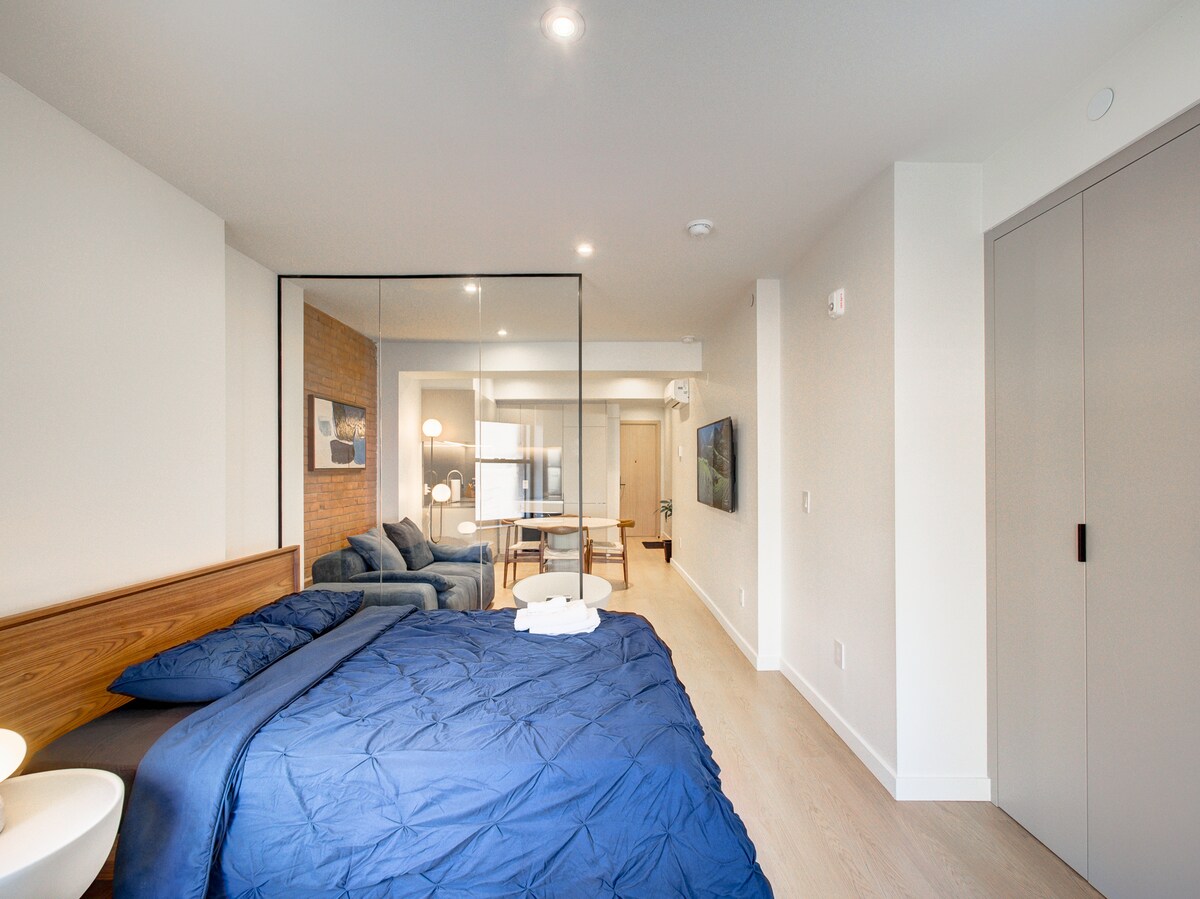 Verið velkomin í þéttbýlisstaðinn þinn í miðborg Montreal! Þessi notalega eign með einu svefnherbergi og einu baðherbergi er staðsett í hjarta borgarinnar og er fullkomin fyrir fríið þitt, hvort sem þú ert hérna í vinnu , rómantískri ferð eða ævintýri á líflegum götum Montreal. Þægindi, stíll og hjartsláttur borgarinnar—velkomin heim!